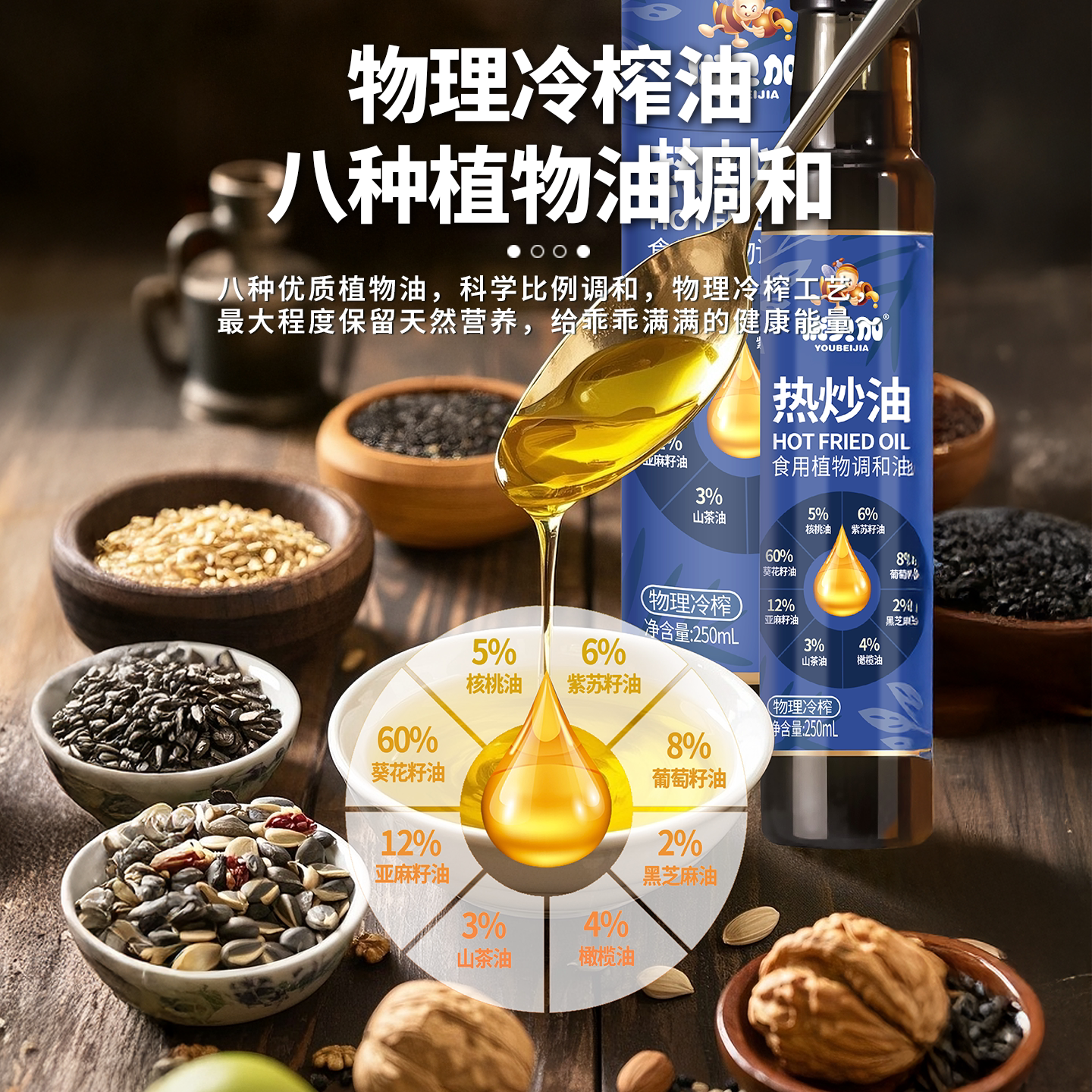 优贝加热炒油食用植物调和油物理冷榨儿童辅食油送营养宝宝辅食谱