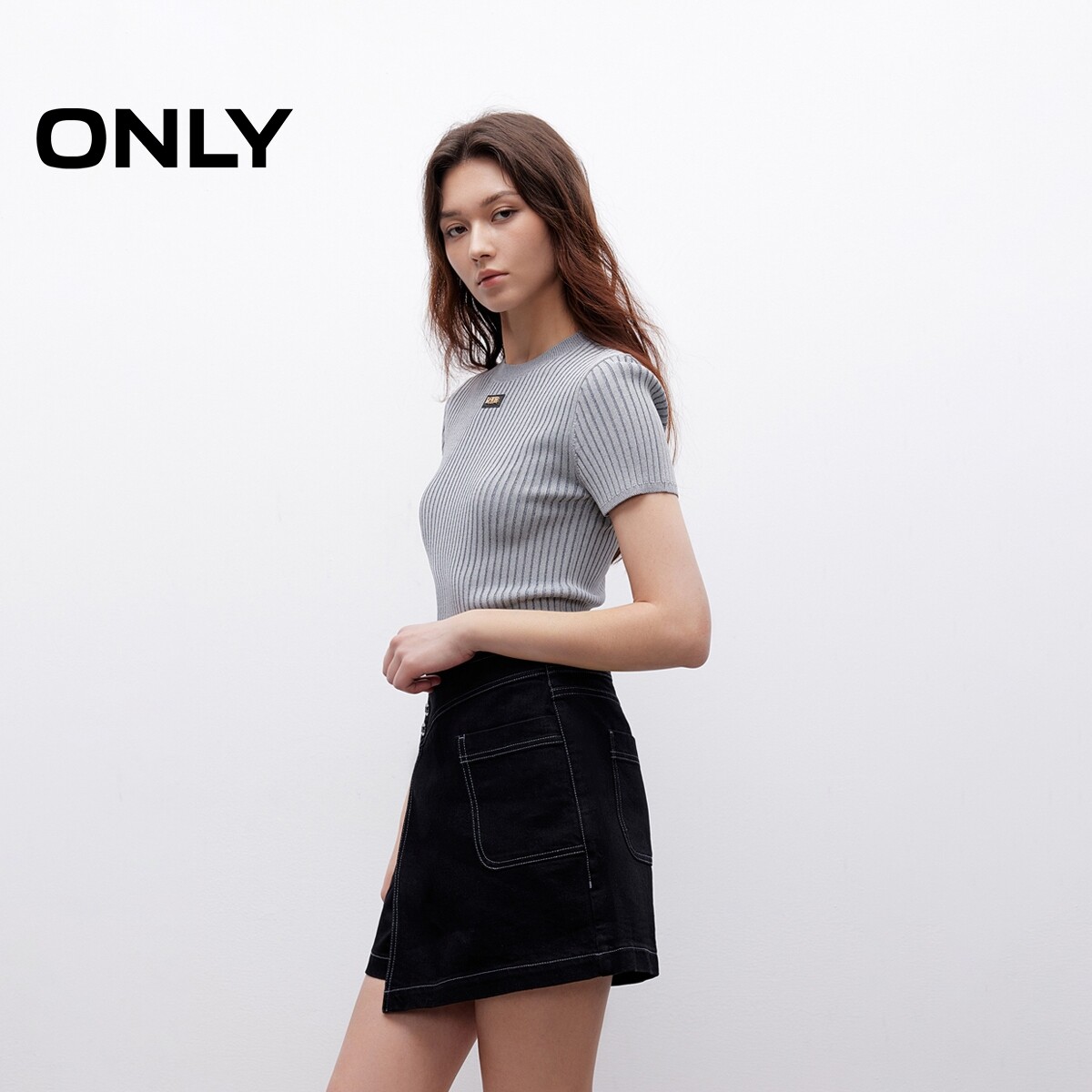 【ONLY奥莱】春夏个性不对称斜襟高腰显瘦A字裤裙短裤牛仔裤女