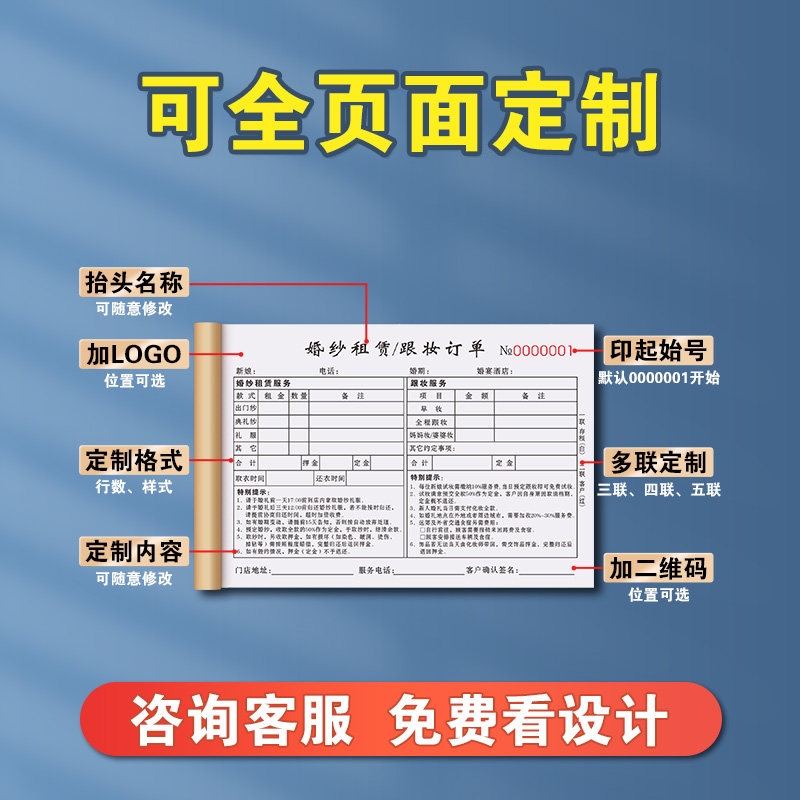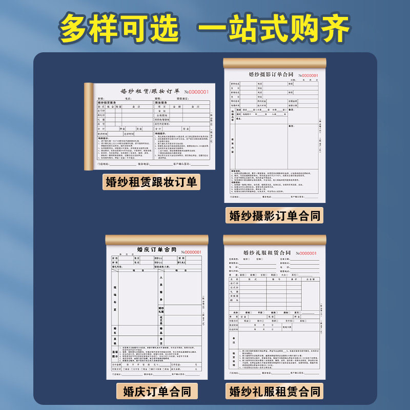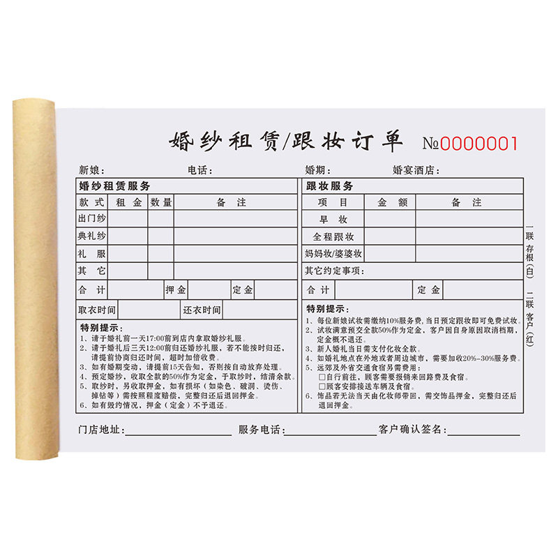 婚纱店订单本礼服馆收据化妆跟妆单据影楼预约流程单婚庆租赁合同
