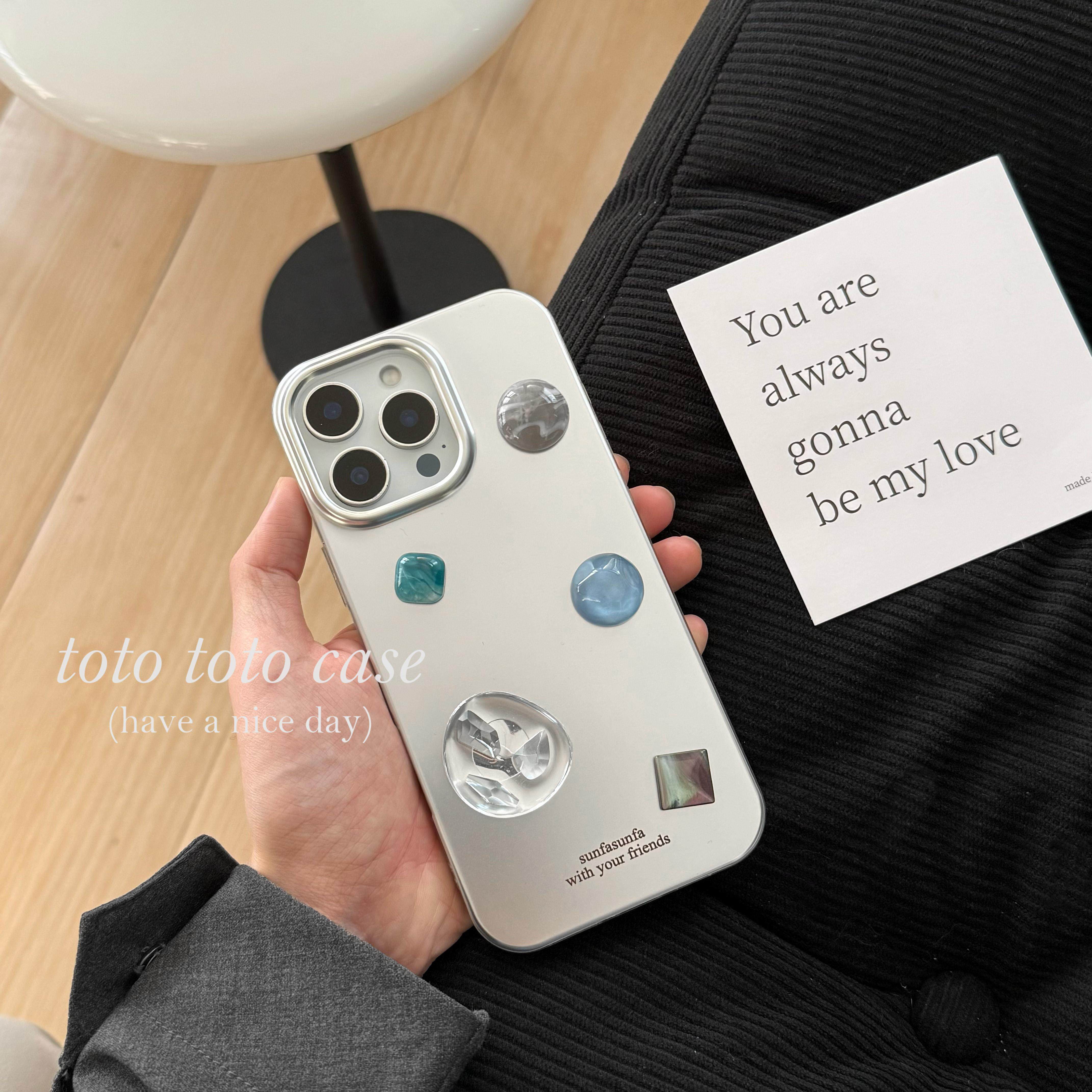 ins复古银色清透立体蓝宝石适用iPhone16promax苹果15/14/13手机壳新款15pro小众高级感保护套17ProMax磨砂壳