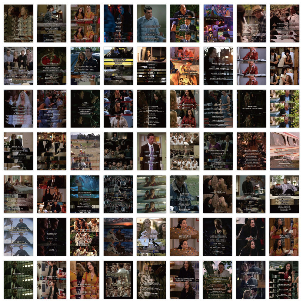 60张美剧治愈经典语录卡通贴纸装饰行李箱手机壳笔记本贴画