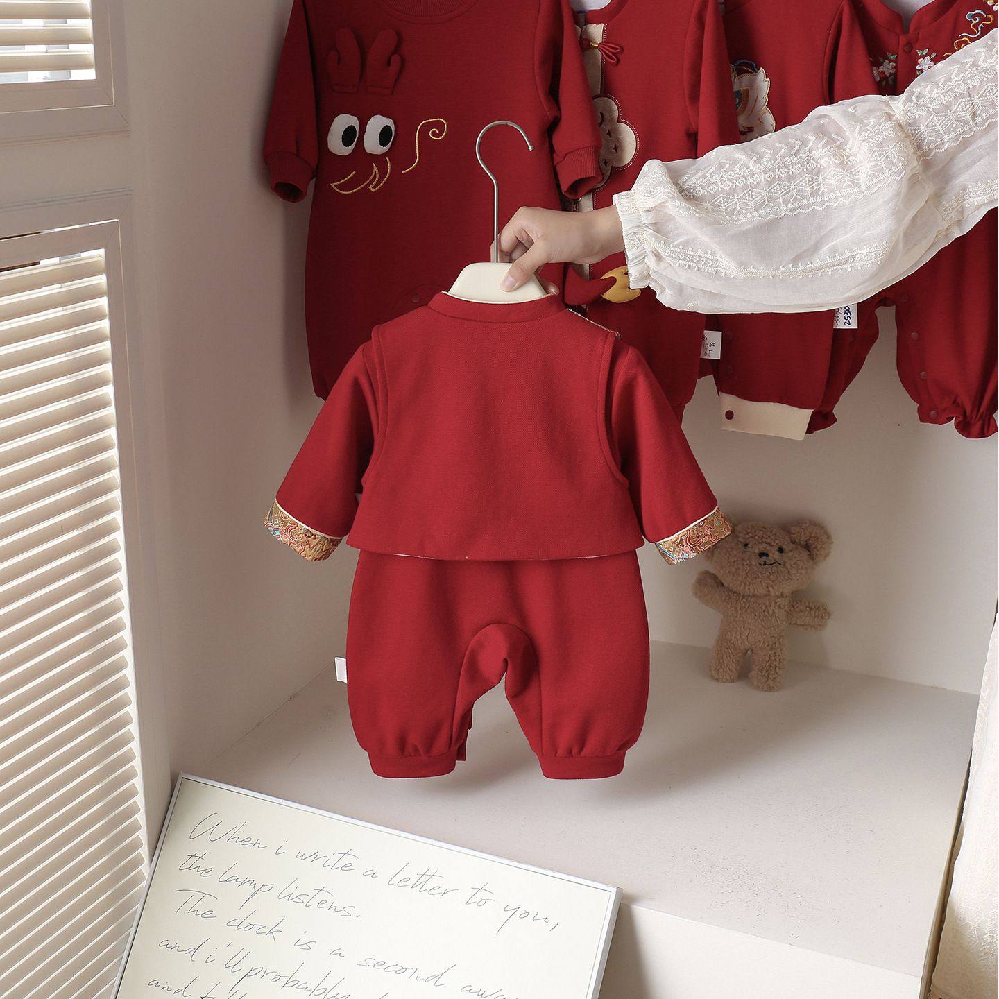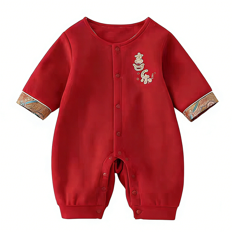 婴儿秋冬季连体衣服宝宝满月红色喜庆国风哈衣过年礼服爬服超萌