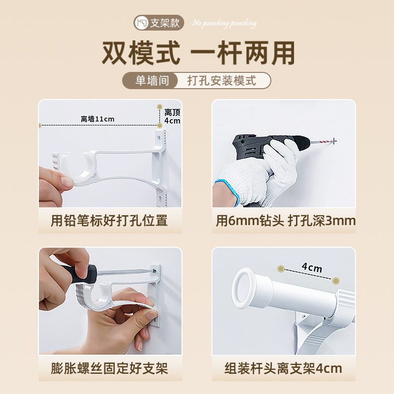 窗帘弹簧伸缩杆一整套全套免打孔安装2026新款卧室遮光轻奢罗马杆