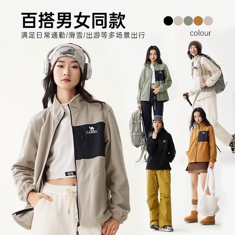 Camel骆驼女装夹克摇粒绒外套秋冬加绒加厚保暖情侣同款抓绒衣