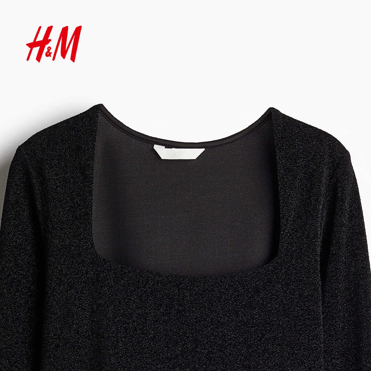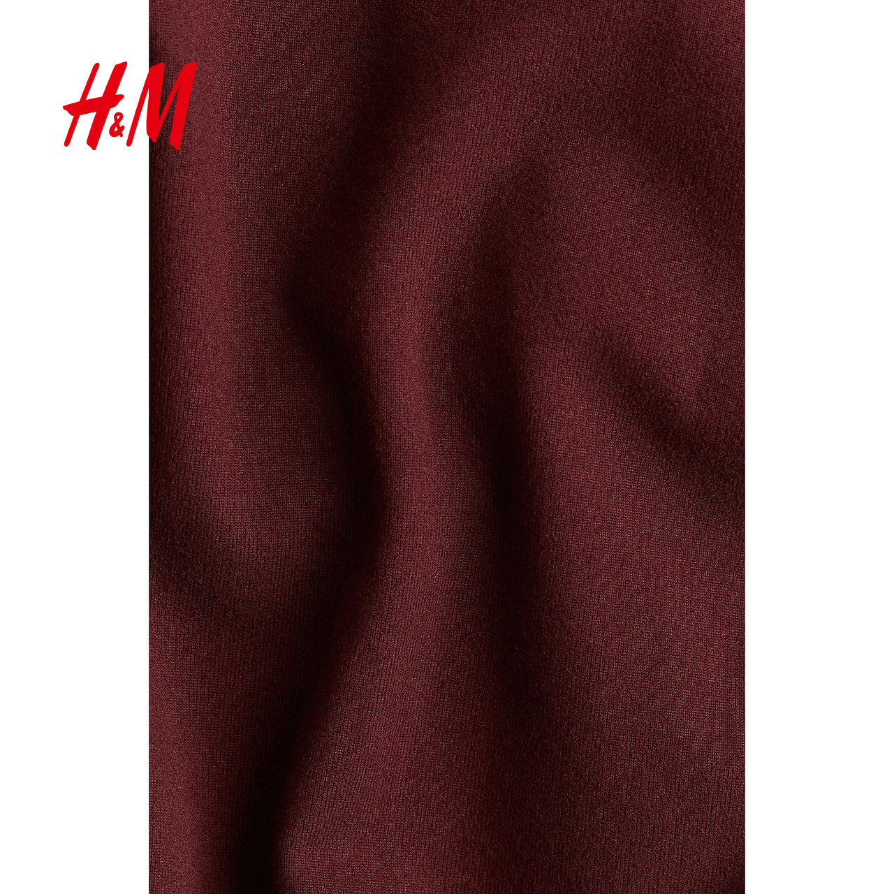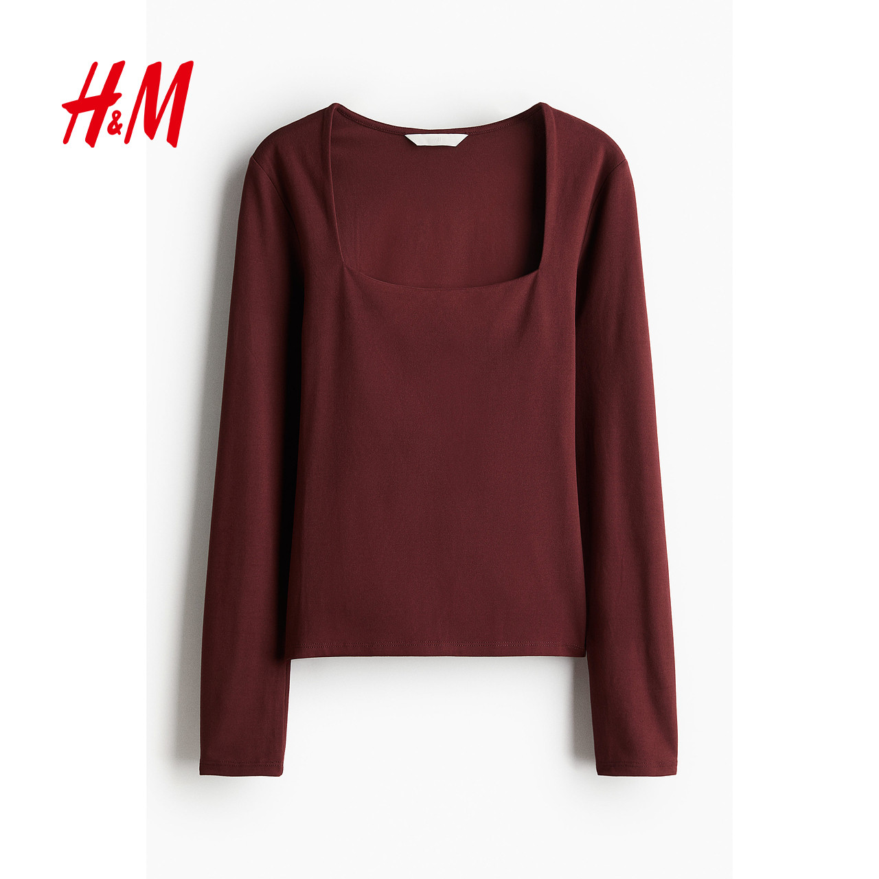 HM女装T恤春季长袖汗布时尚气质打底内搭红色上衣1089811