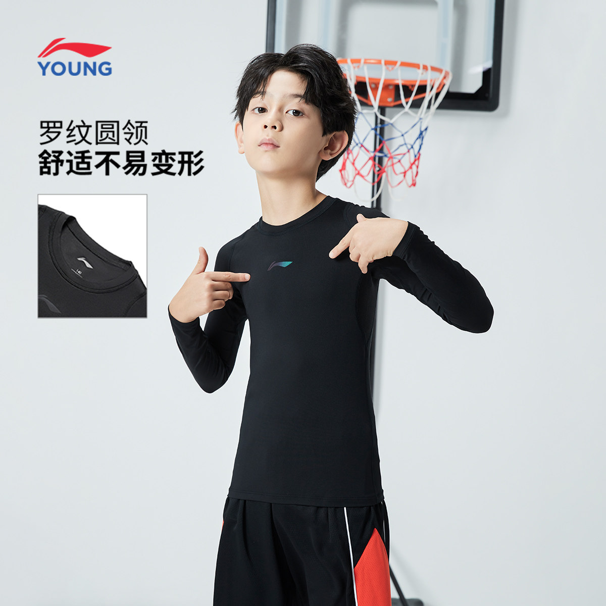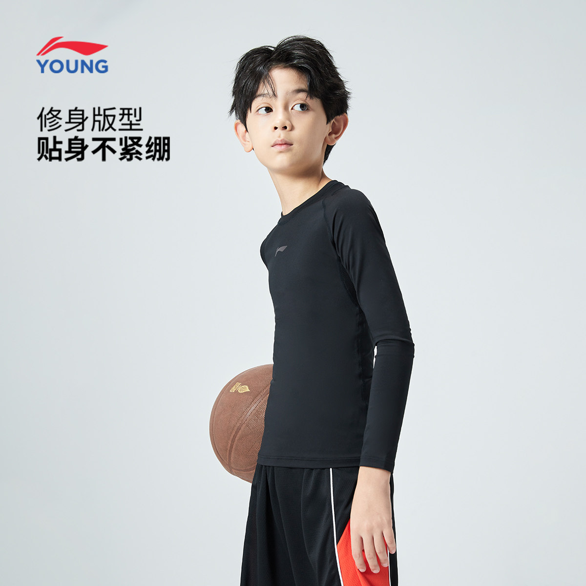 李宁儿童健身衣男童装2025新款篮球服打底长袖t恤秋季青少年上衣