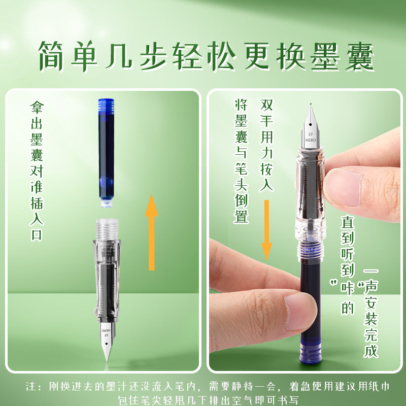 英雄牌可擦钢笔三年级小学生专用热敏换墨囊儿童练字小学生初用钢笔四年级学习用品钢笔免费刻字官方正品