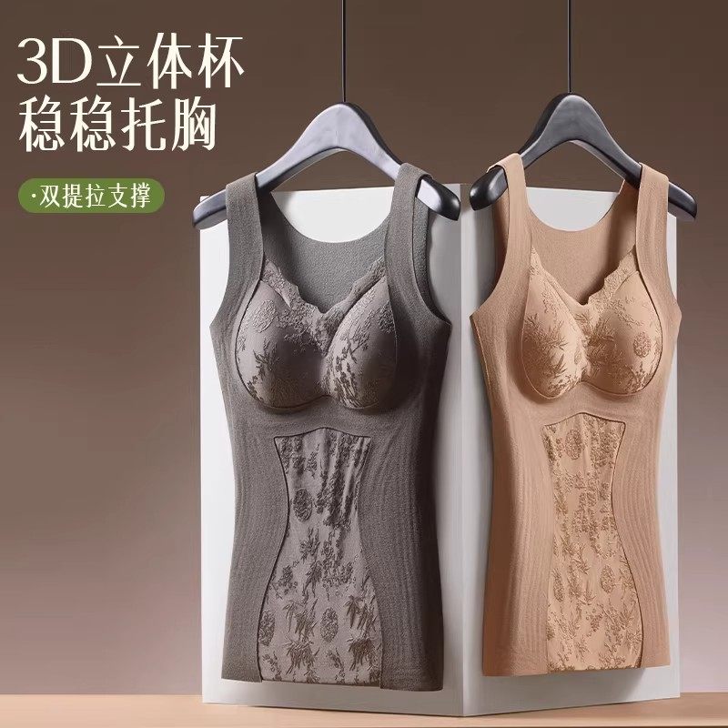 女士保暖背心打底自带胸垫塑身内衣秋冬发热女士无痕收腹大码背心