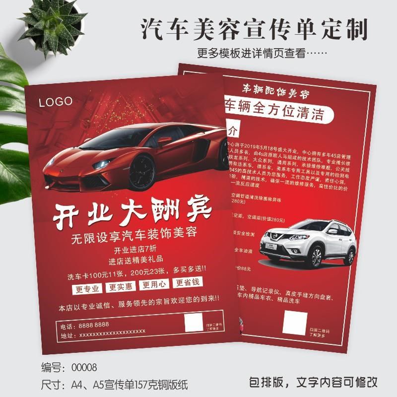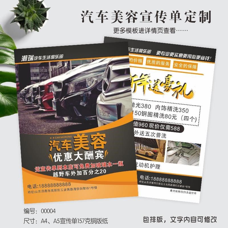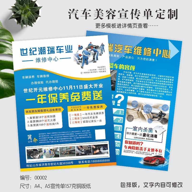 汽车美容宣传单海报定制洗车养护维修开业活动4ST店DM单设计印刷