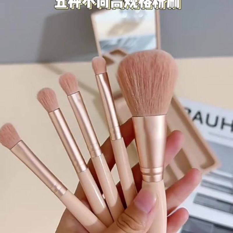 5支化妆刷旅行套装软毛散粉刷眼影刷子平价便携莫兰迪收纳盒镜子