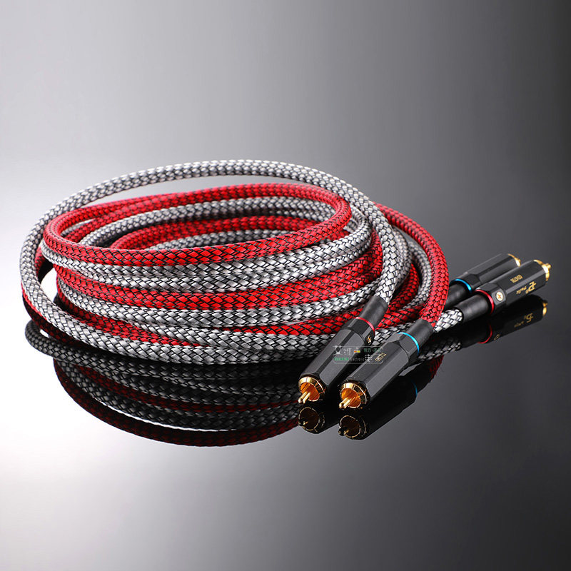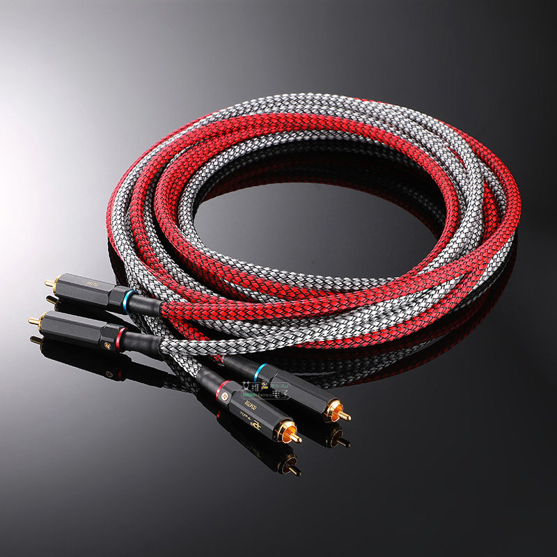 发烧音频线日本佳耐美双莲花影音信号线美国百威RCA插头自锁DVD线