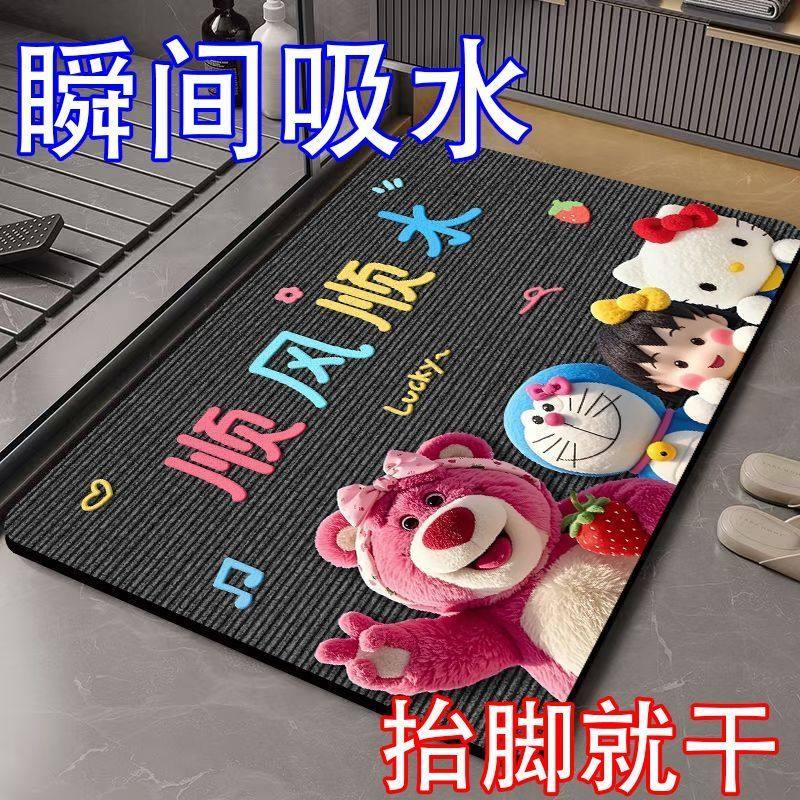 草莓熊硅藻泥吸水垫地垫防滑淋浴房脚垫卫生间门口卡通厕所门垫