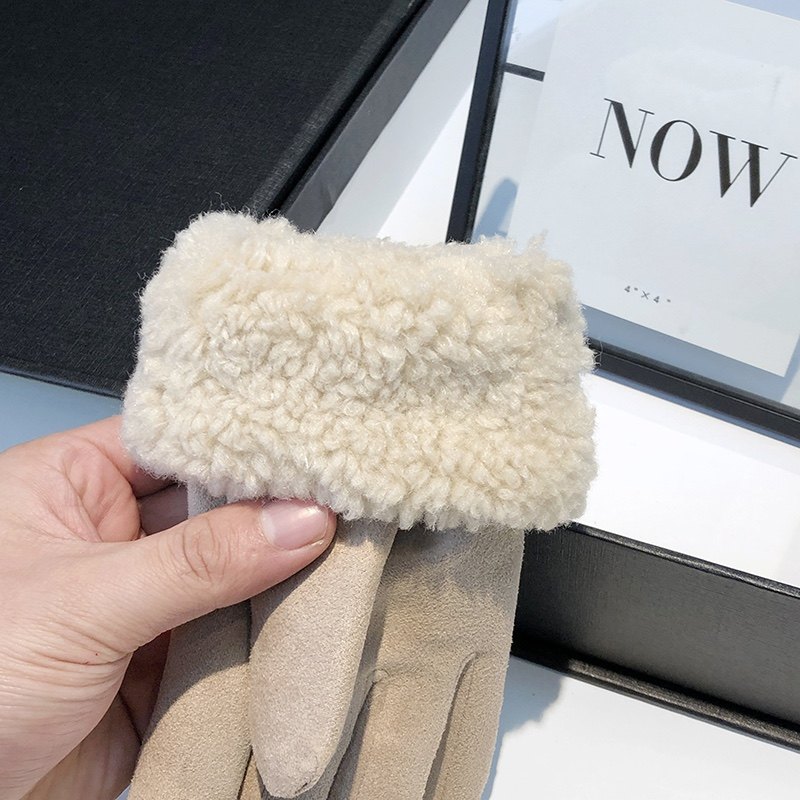 手套女冬季加绒加厚保暖户外骑行开车滑雪防寒可触屏羊羔毛绒手套
