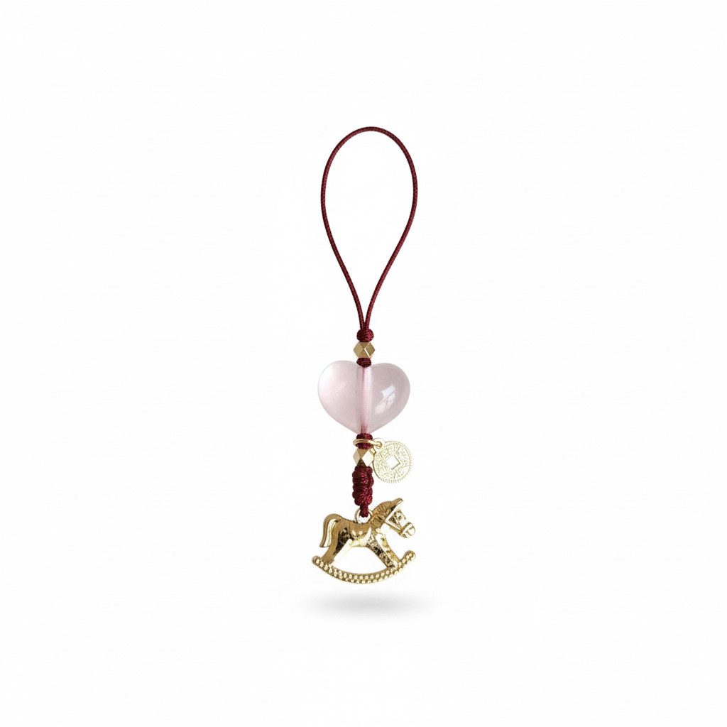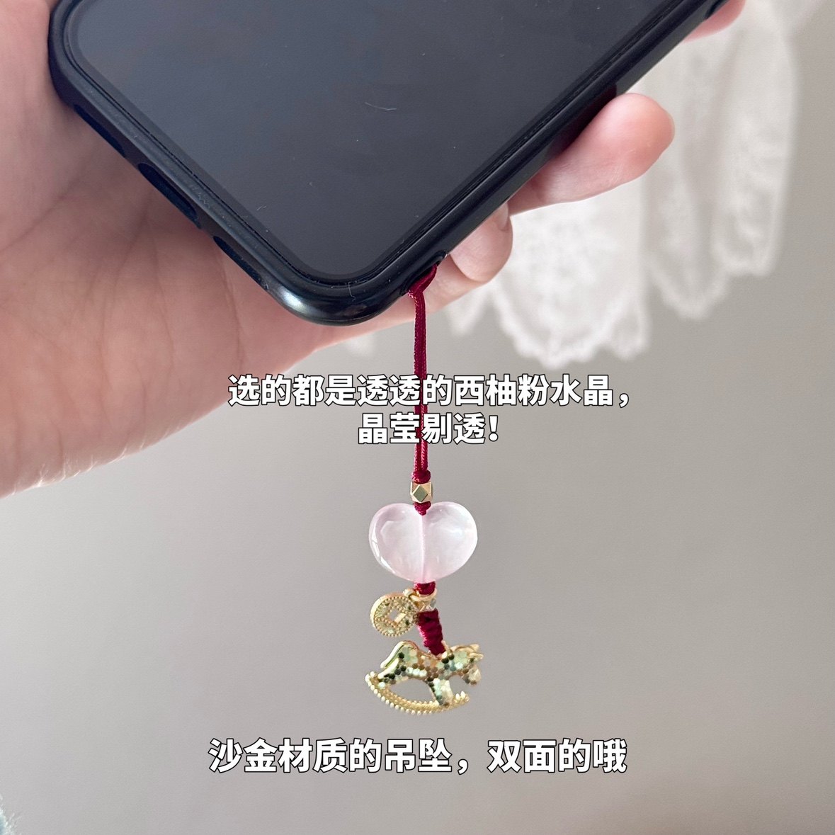 贝奇手作· /金马奔钱程~粉桃遇小满/原创粉晶屁桃手机绳好运2026