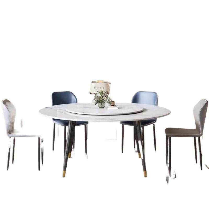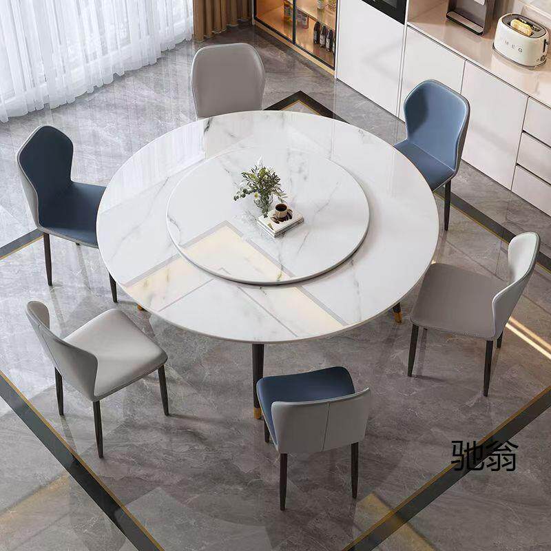 轻奢岩板餐桌圆桌餐桌椅饭桌转盘桌椅小户型圆形现代简约组合家用