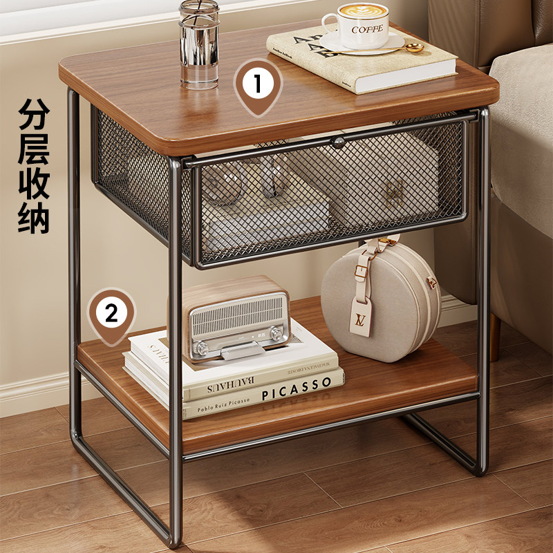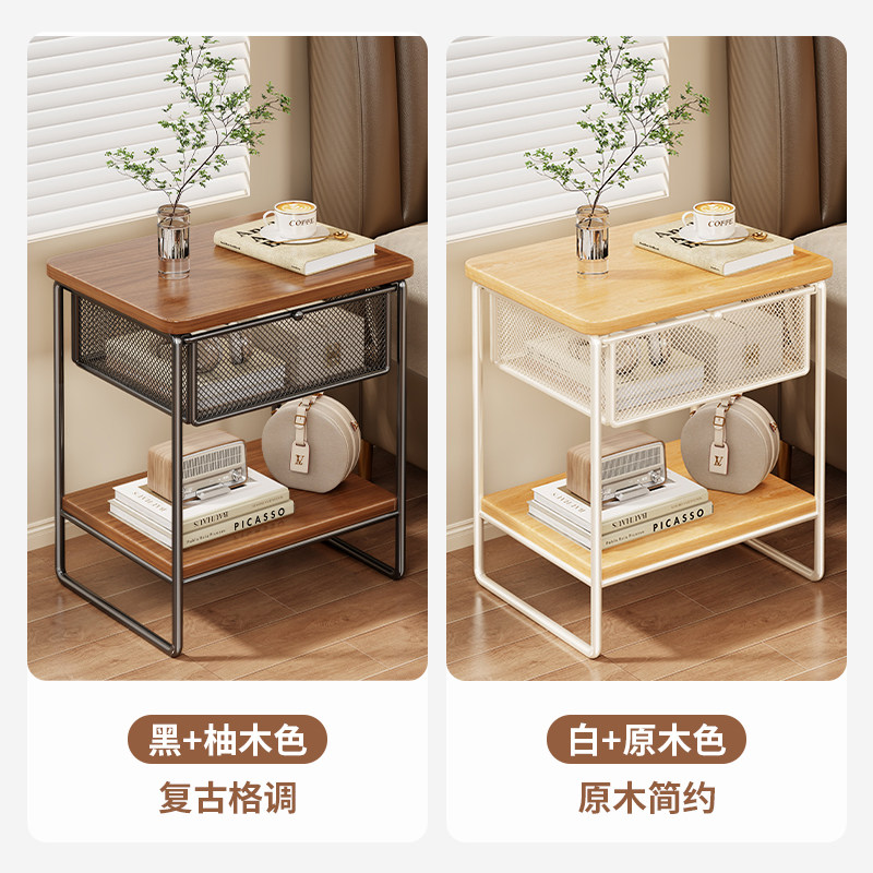 轻奢复古多功能床头柜家用分层带抽屉收纳卧室简易小型置物架铁艺