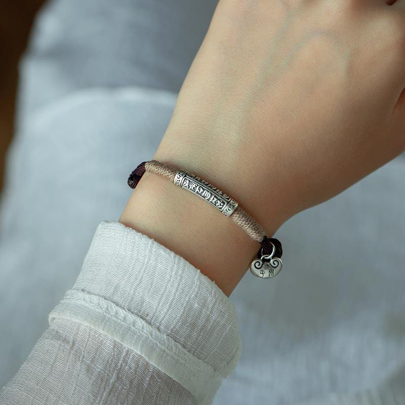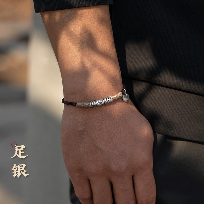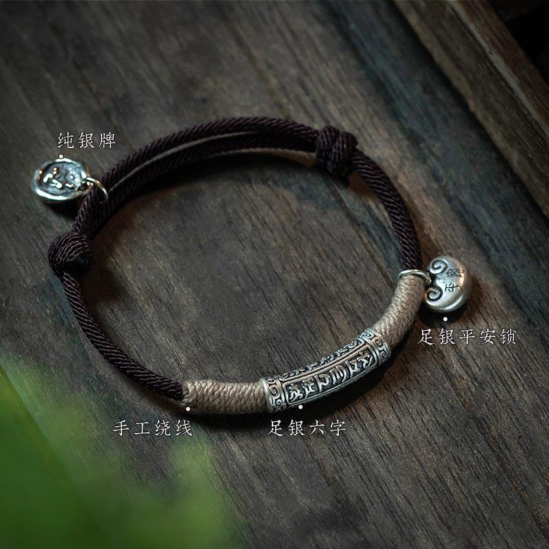大善堂纯银六字真言手绳本命年手链足银平安锁手工编织男生高级礼