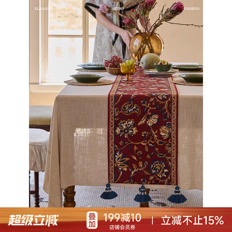 【第3件0元专区】蜡笔派「赛丽斯系列」复古桌旗红色高级感茶旗