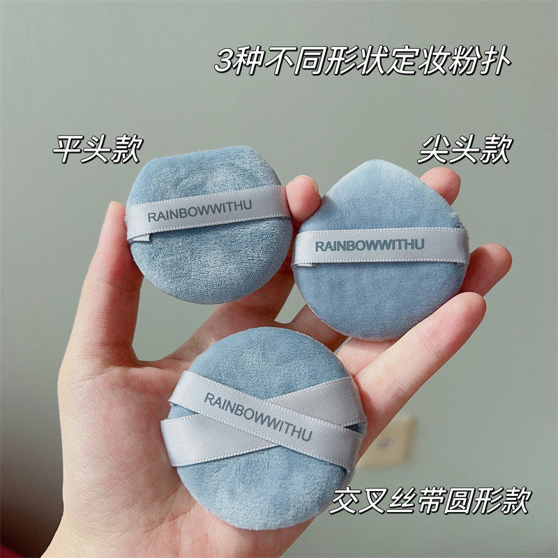 钱小姐。3片滑溜溜短植绒定妆粉扑散粉扑上妆工具双绑带粉饼修容