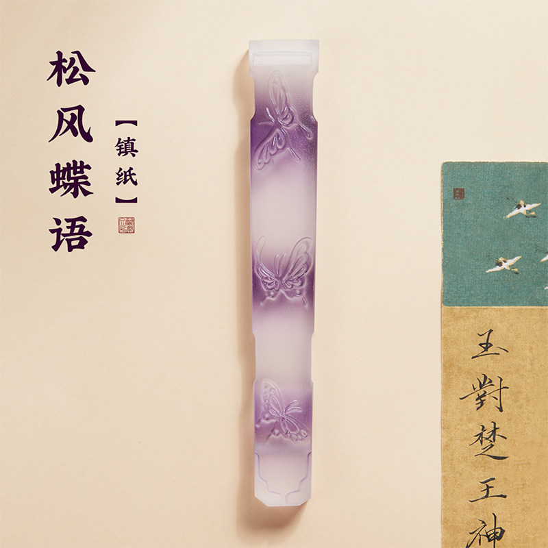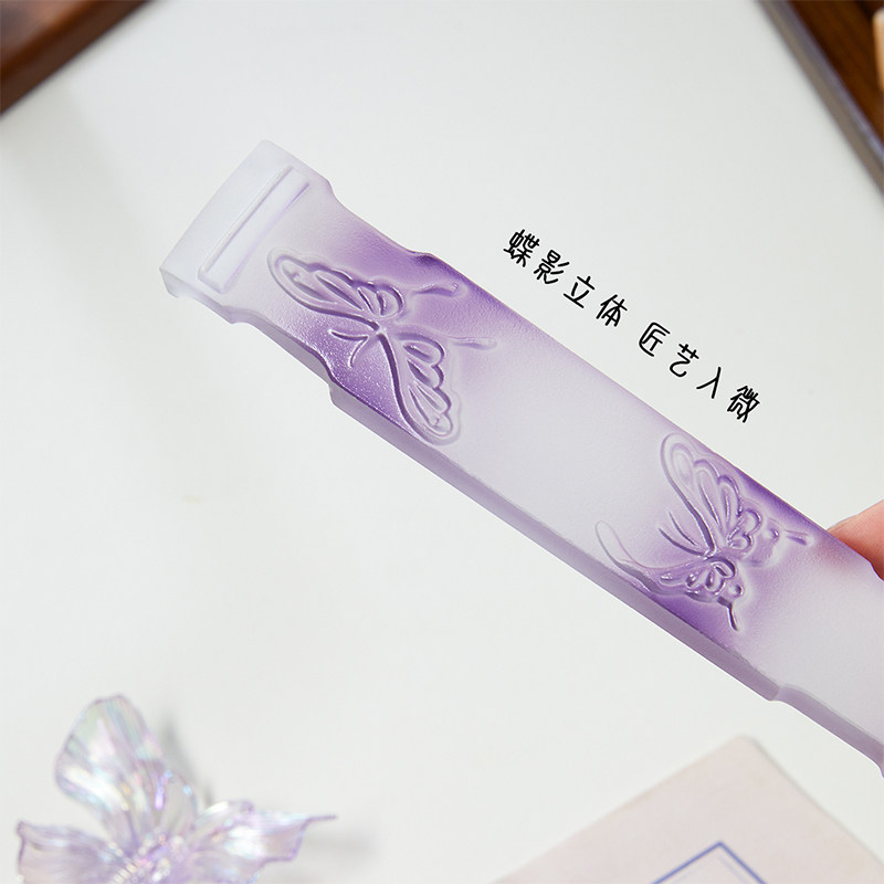 琉璃质感水晶玻璃蝴蝶镇纸笔搁文创摆件书法书画镇纸创意镇尺压纸器学生初学者文房四宝古琴镇尺高颜值送礼