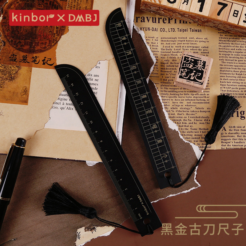 kinbor盗墓笔记黑金古刀尺子张起灵正版周边高颜值学生文具多功能格尺直尺手帐用学生划线尺金属尺15cm作图用