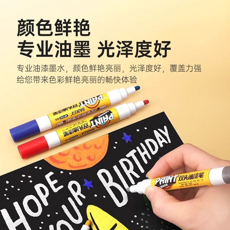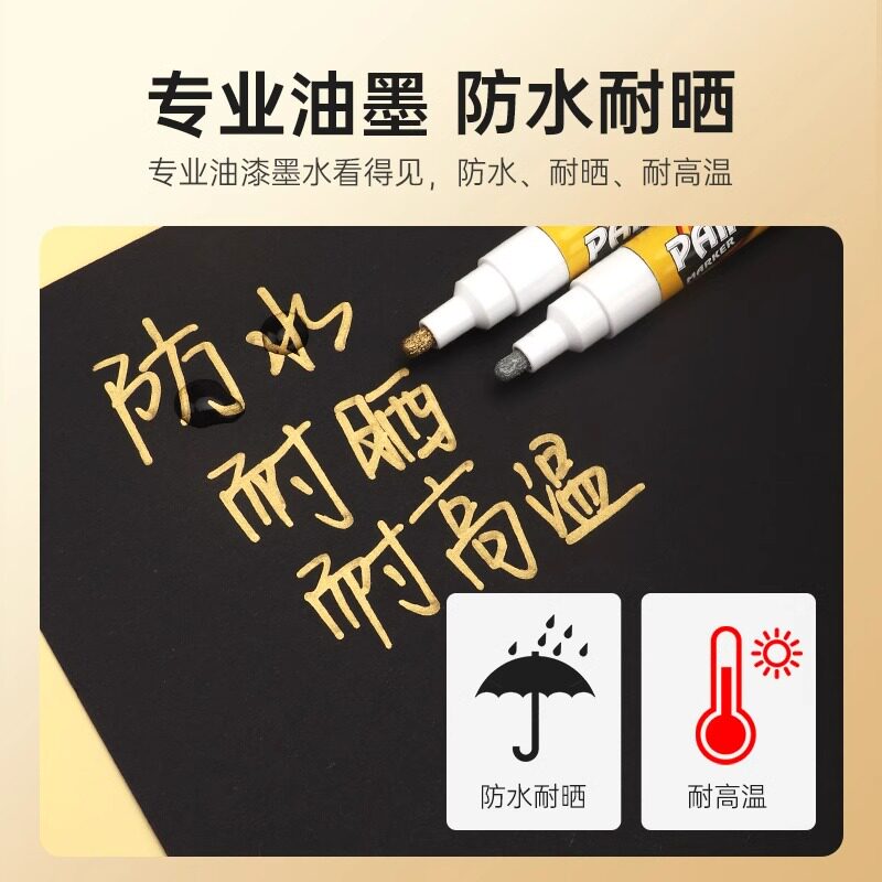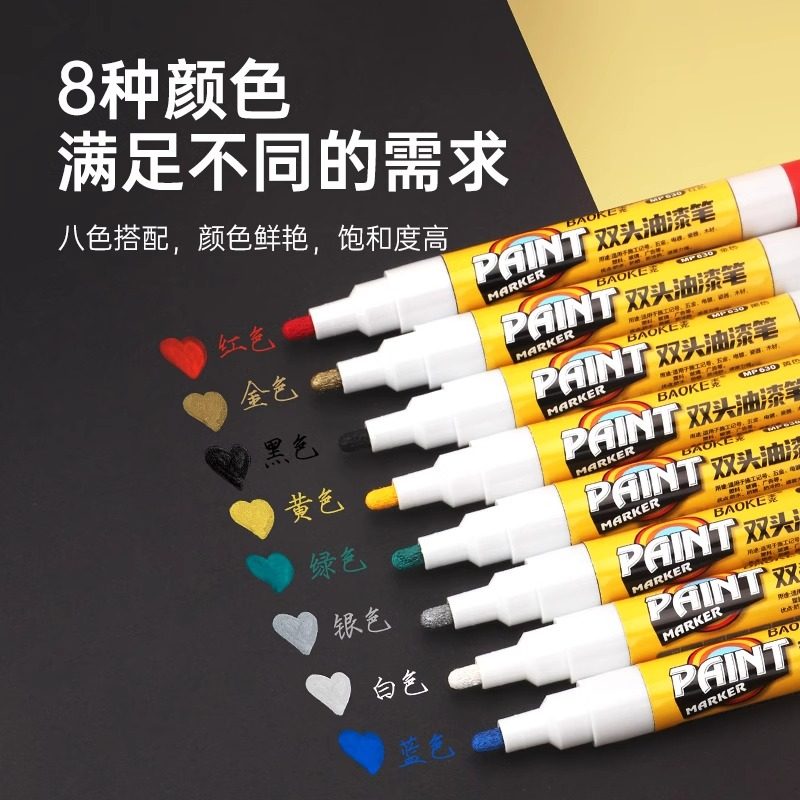 油漆笔双头粗头细头彩色笔diy卡纸手绘金银白色油性高光笔防水不掉色耐高温记号笔金属轮胎漆油笔工业补漆笔