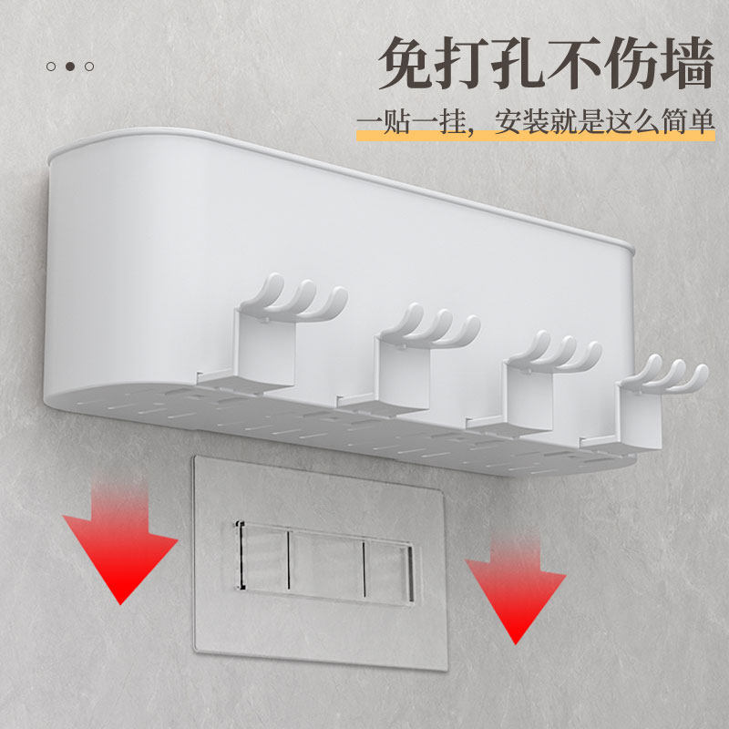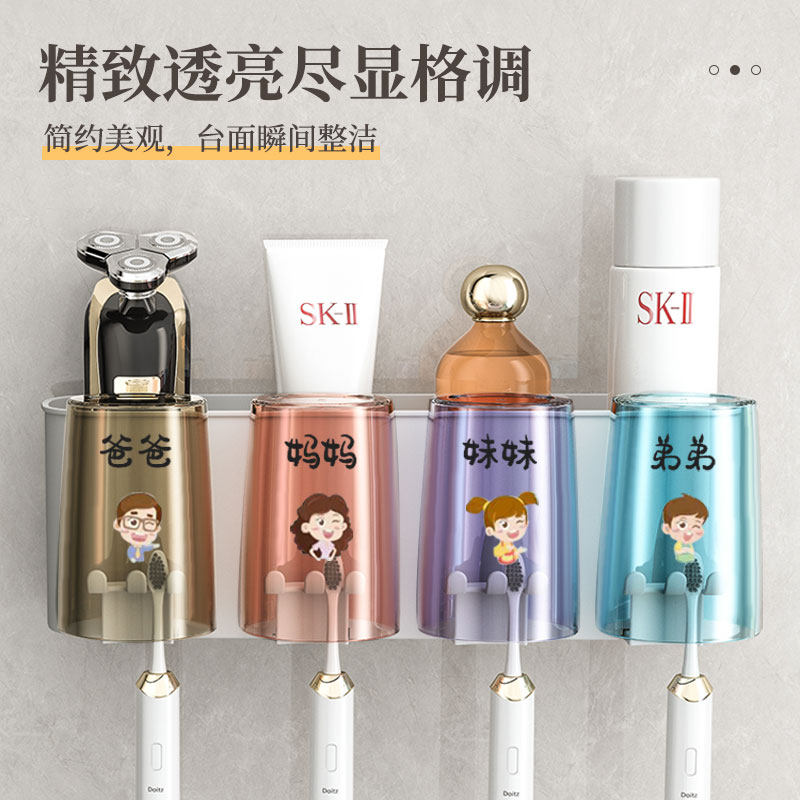 2025新款牙刷牙膏置物架壁挂式免打孔漱口杯电动牙刷挂壁一家四口