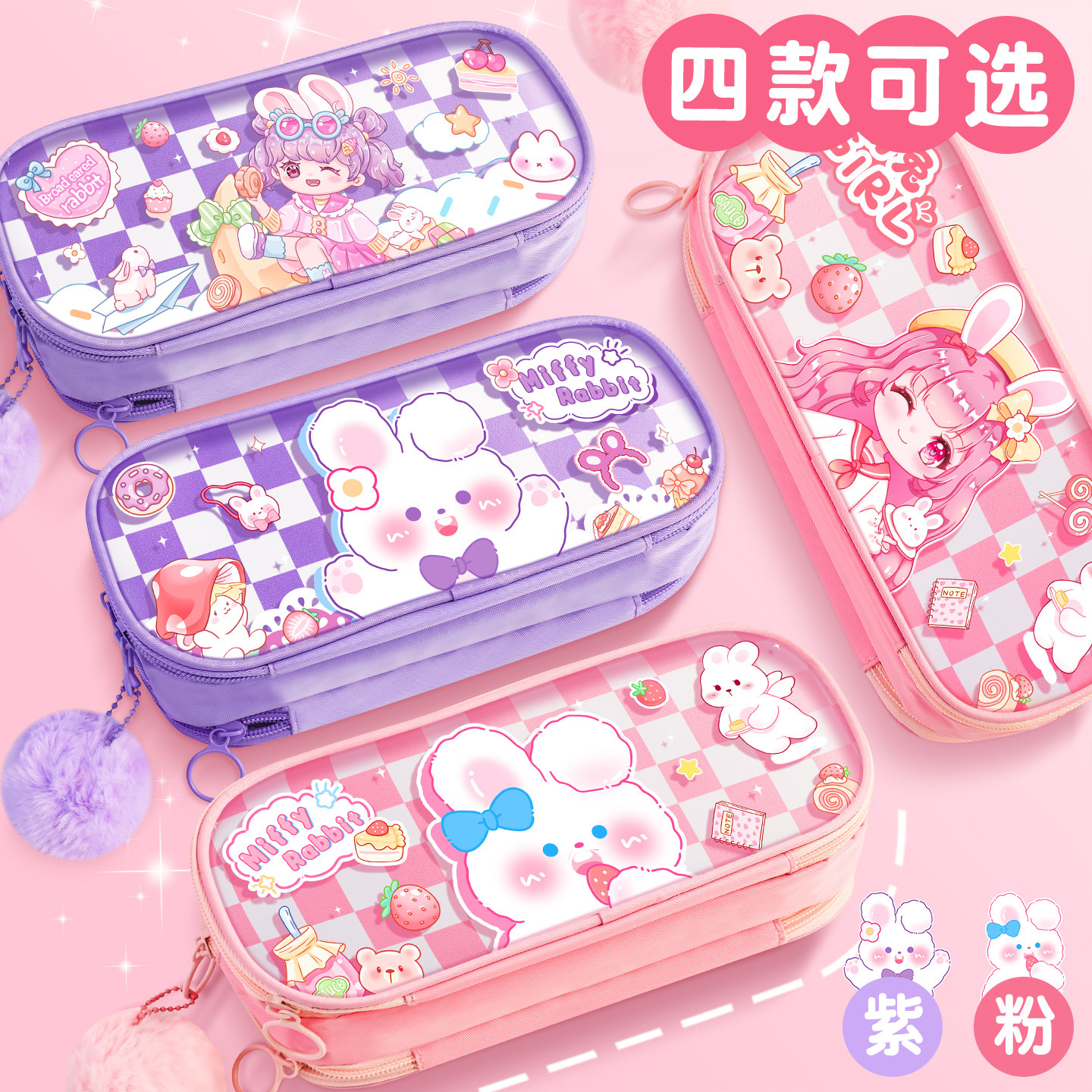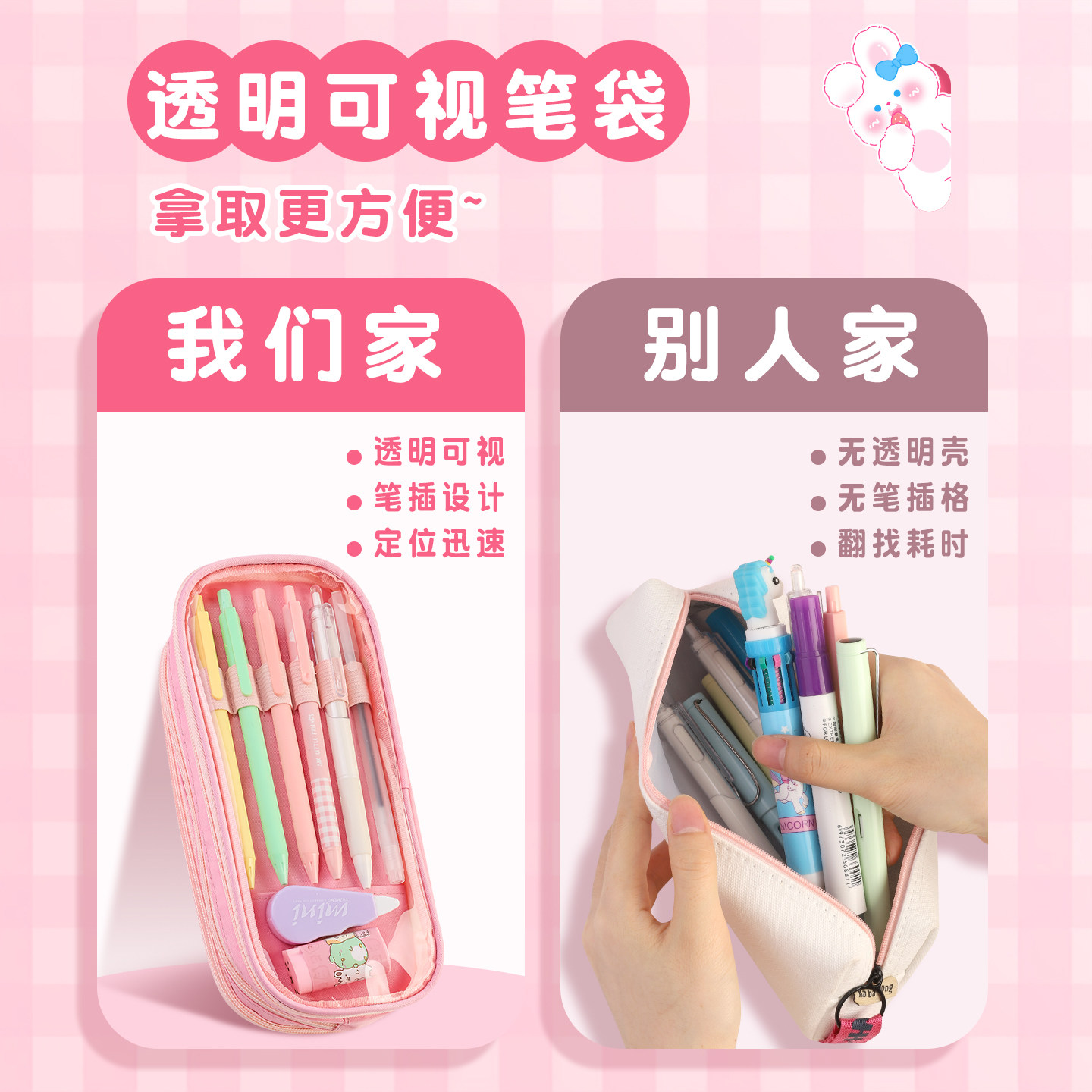 大容量透明笔袋女孩文具盒铅笔盒2022年流行版新款小学生少女心女生款多功能儿童可爱高颜值多层文具袋铅笔袋