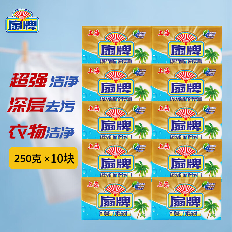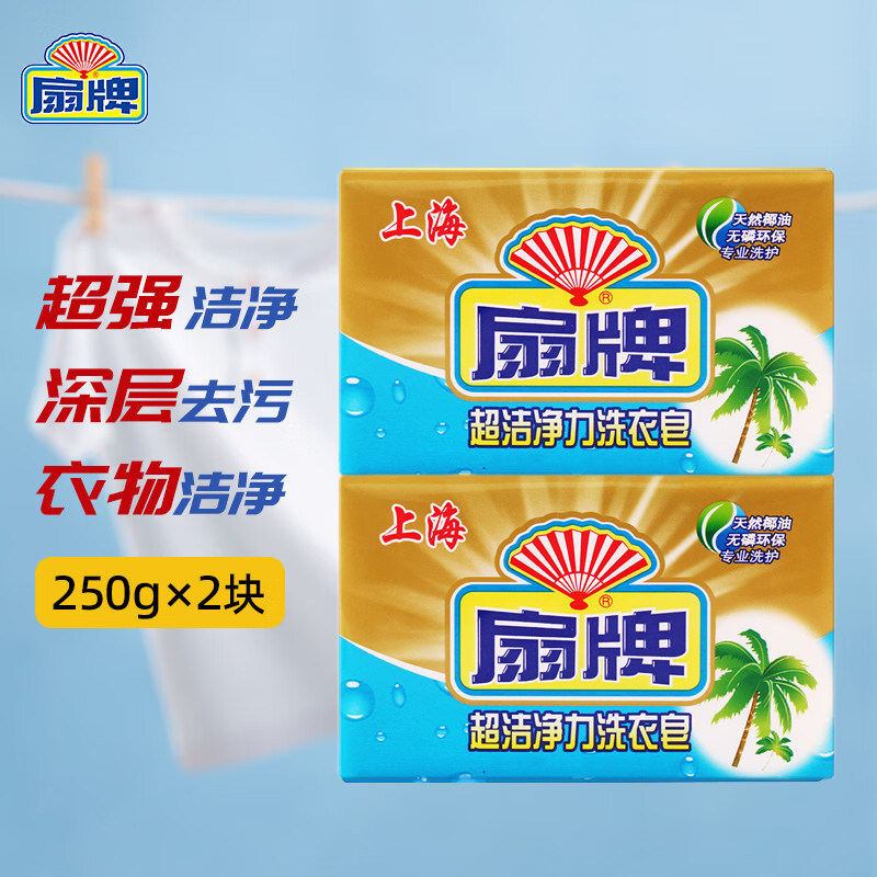 扇牌超洁净力洗衣皂250g易漂易洗无磷环保深层去污手洗肥皂家庭装