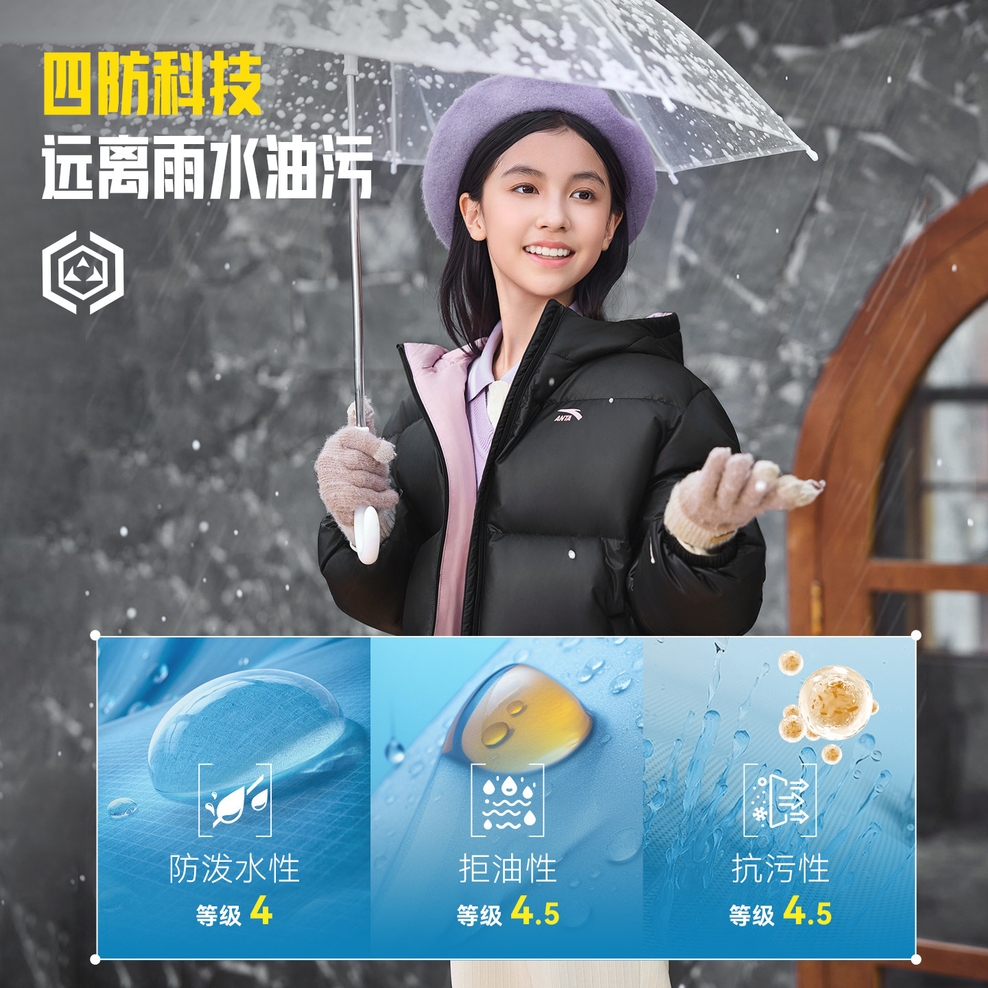 安踏儿童女童羽绒服2025冬款新舒适保暖中大童四防连帽面包服外套