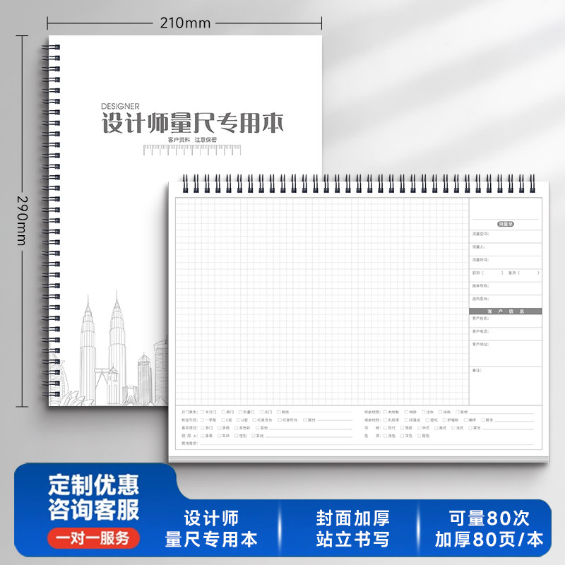 设计师量尺本全屋定制量房本A4加厚测量本室内设计装修笔记本子画图本网格方格本线圈手绘本定做可印logo