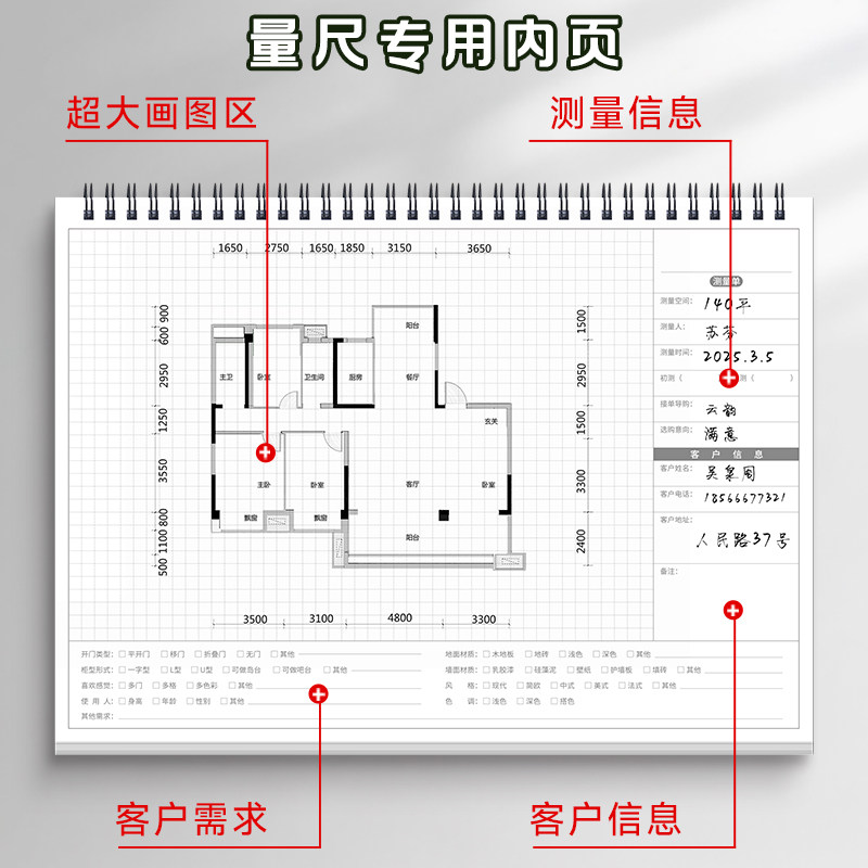 定制室内测量房A4设计师尺寸专用全屋装修绘图做记录线圈笔记本子