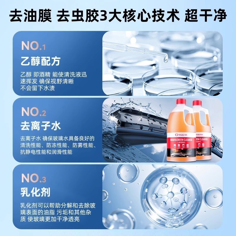 汽车玻璃水乙醇强力去污去油膜浓缩兑水夏季雨刮水防冻去虫胶清洁