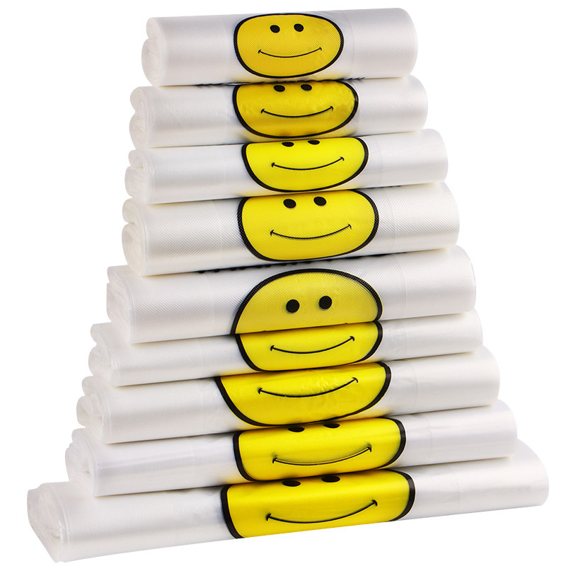 加厚笑脸袋透明塑料方便袋打包袋子手提外卖背心袋购物水果袋批发