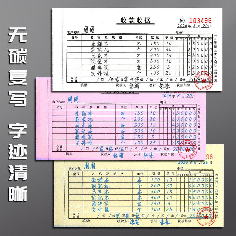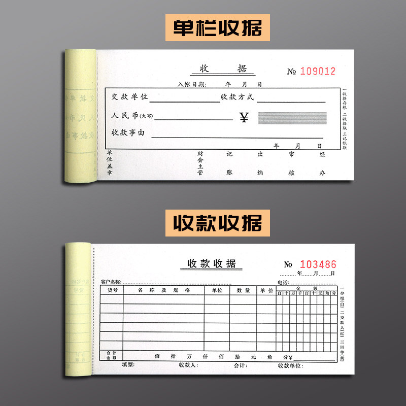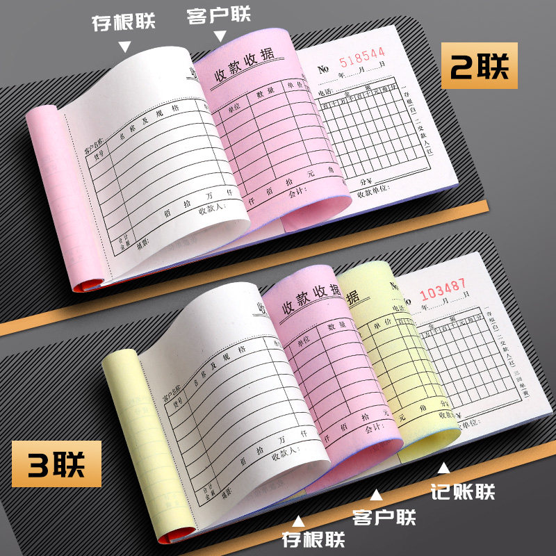 20本通用票据收据收款收据单多栏二联三联2/3连两联现金收款本单据簿账簿交款收据无碳复写餐饮财会财务用品