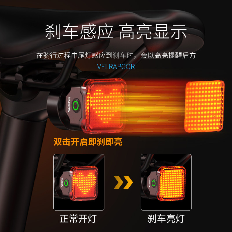 微笑鲨自行车尾灯智能感应刹车灯骑行装备山地车公路车夜骑尾灯