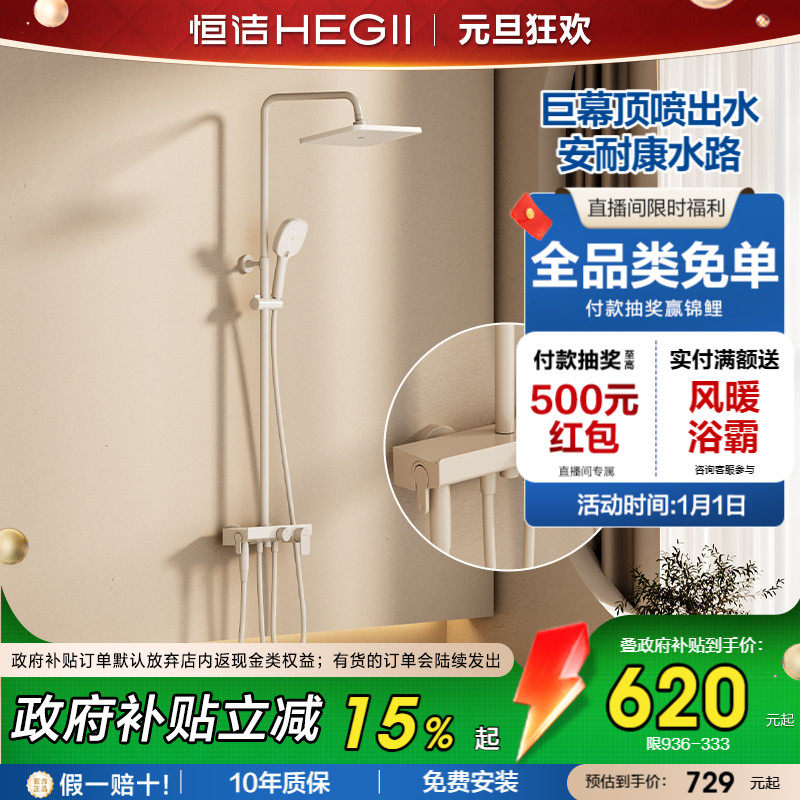 恒洁法式奶油风平台置物除垢易洁淋浴花洒套装卫生间防烫淋浴器