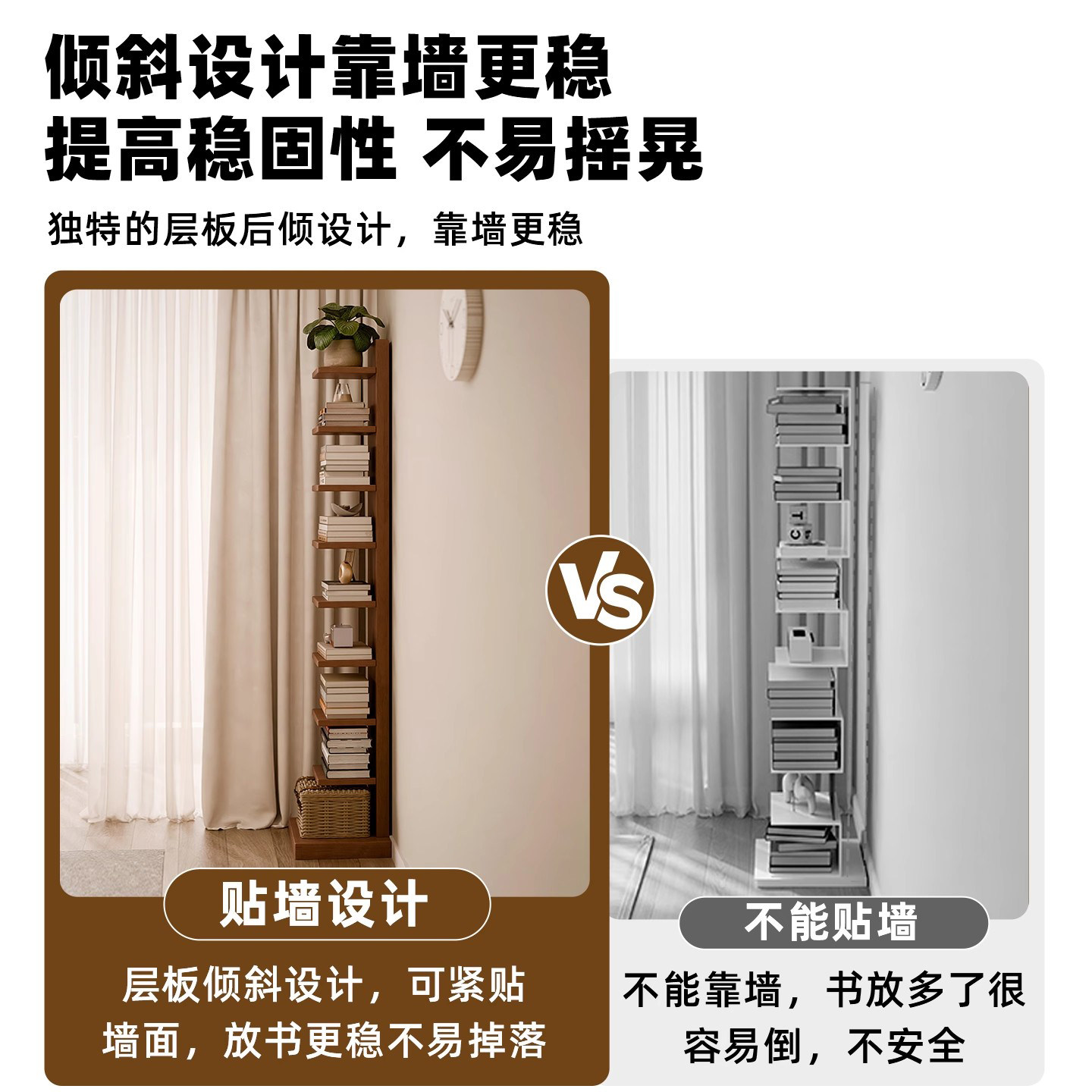 家逸实木书架落地置物架不占空间隐形立式家用客厅书架墙边窄书柜