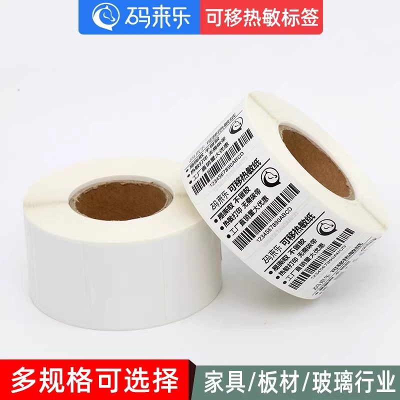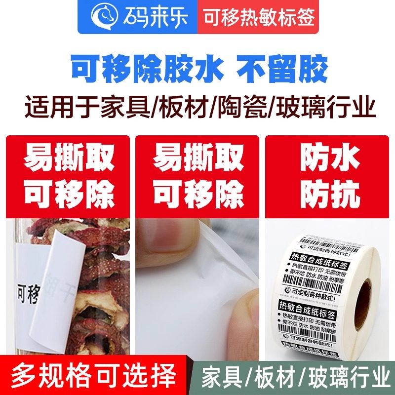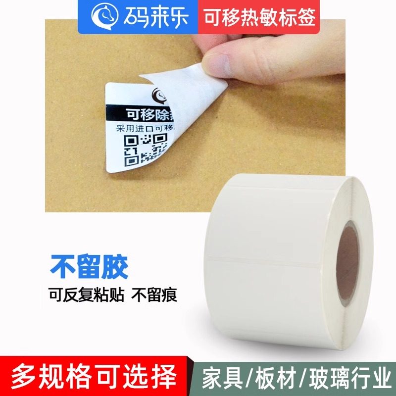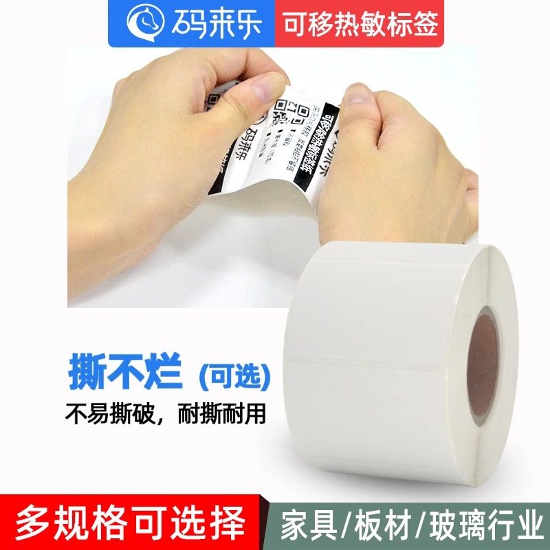 可移除合成热敏防水撕不烂标签纸不留胶易撕耐冷链颜色标贴口取纸分类标记家具板材玻璃不干胶条码打印贴纸