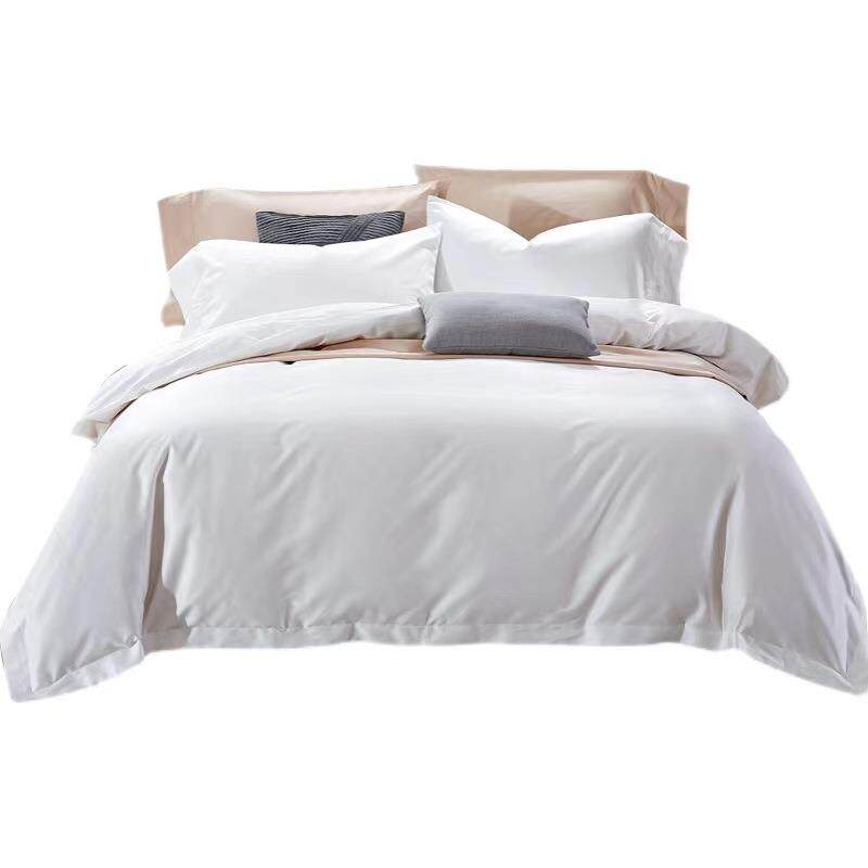 酒店被套丝光贡缎暗纹缎条宾馆民宿布草白色纯棉加厚床上用品套件