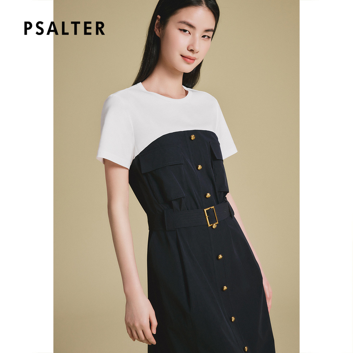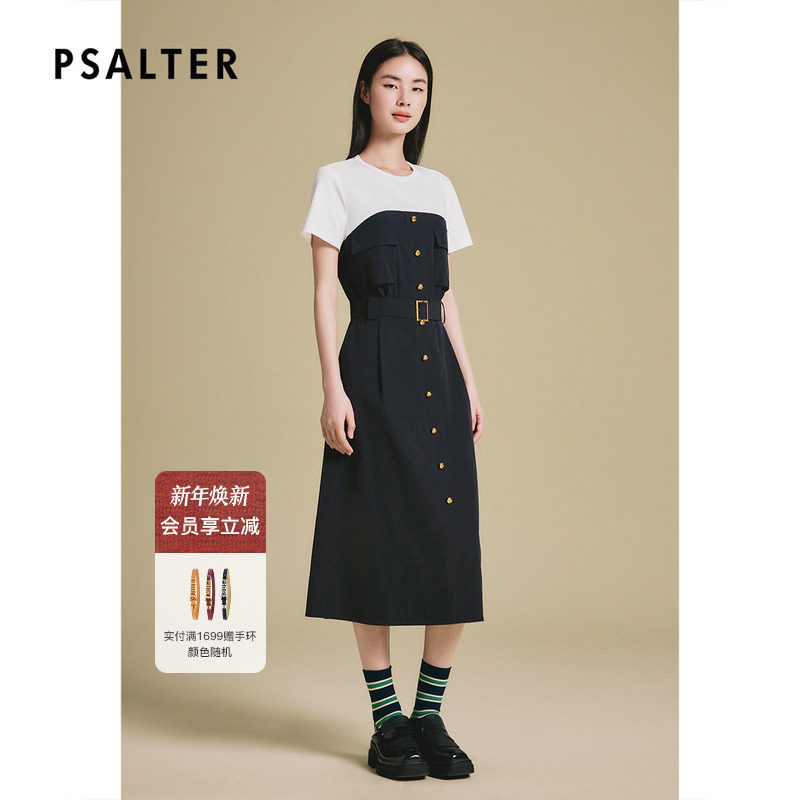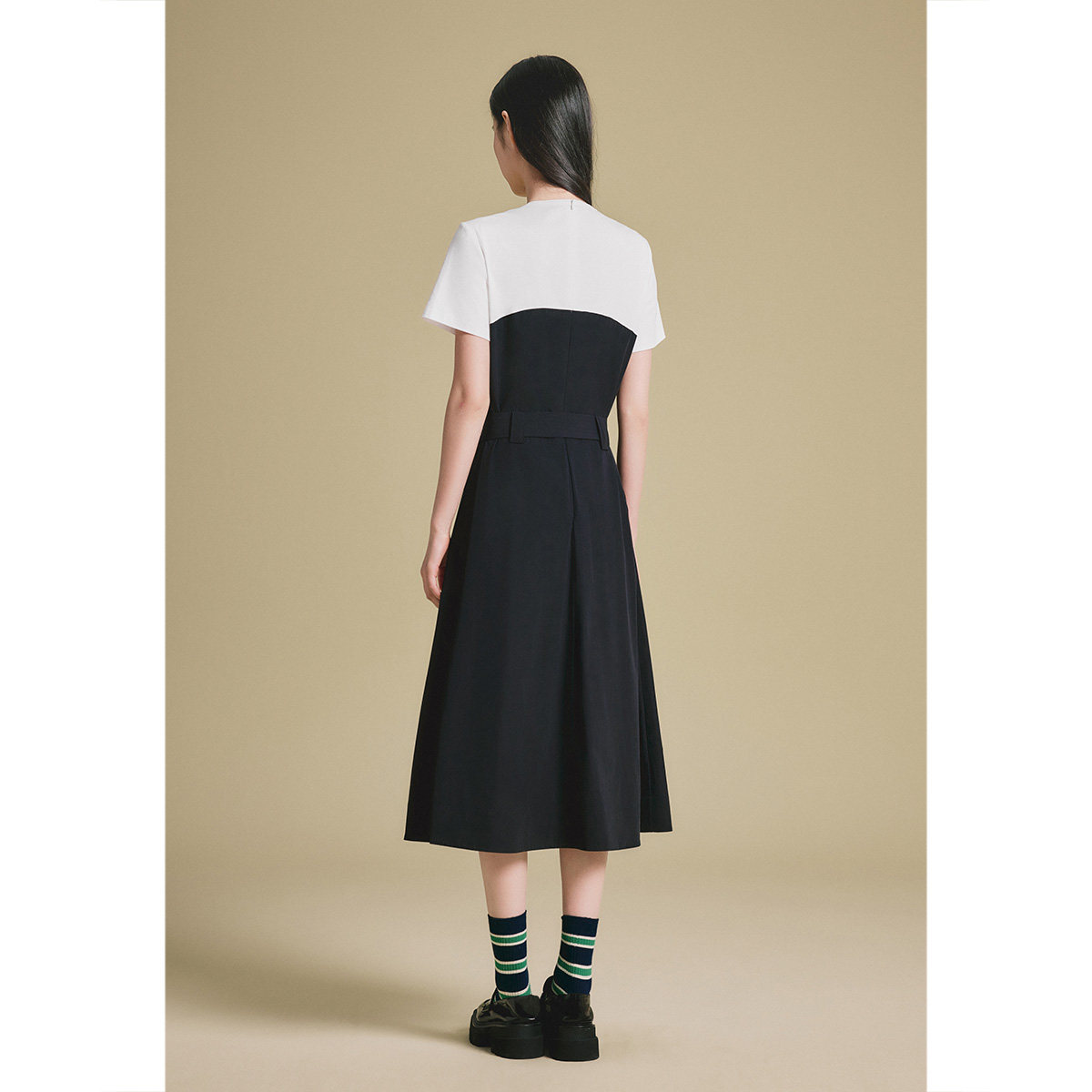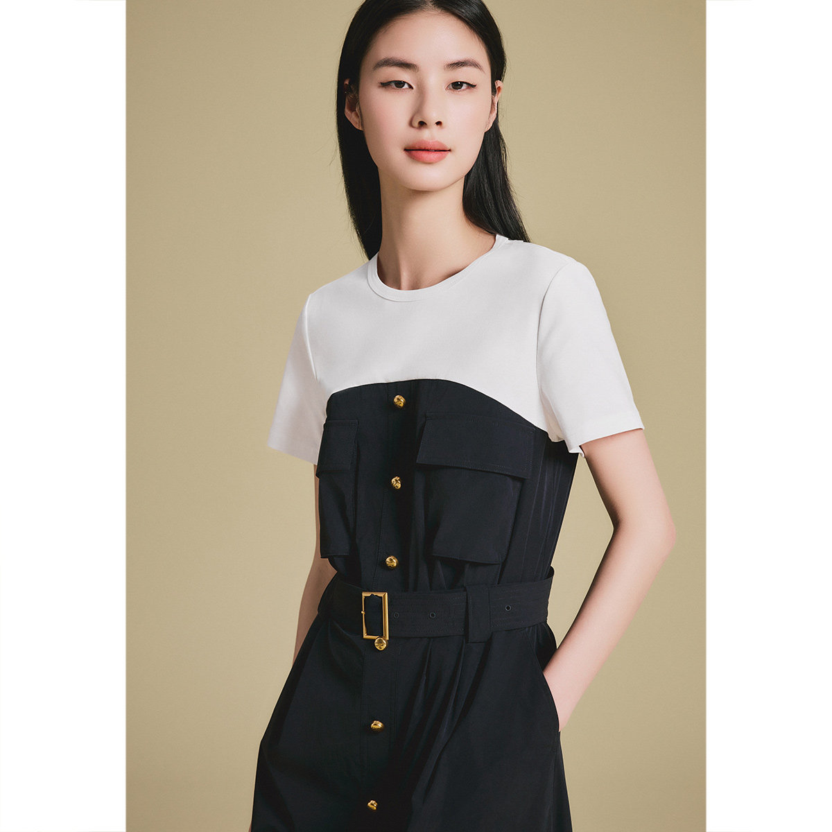 诗篇专选拼接撞色设计连衣裙女休闲简约收腰显瘦裙子2025夏季新款