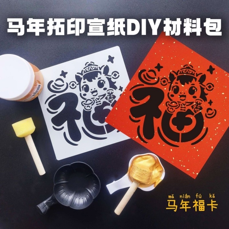 2026马年元旦拓印福字金箔画年画diy非遗儿童亲子活动套装幼儿园
