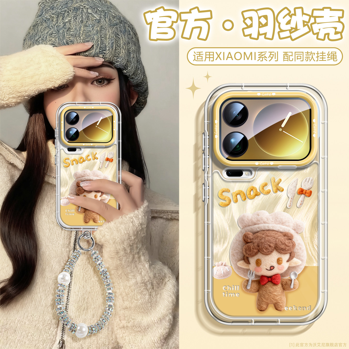 沃艾尼适用小米17promax手机壳ins秋冬15pro镜头全包17气囊防摔14链条13pro创意毛毡15ultra新款羽纱14pro女