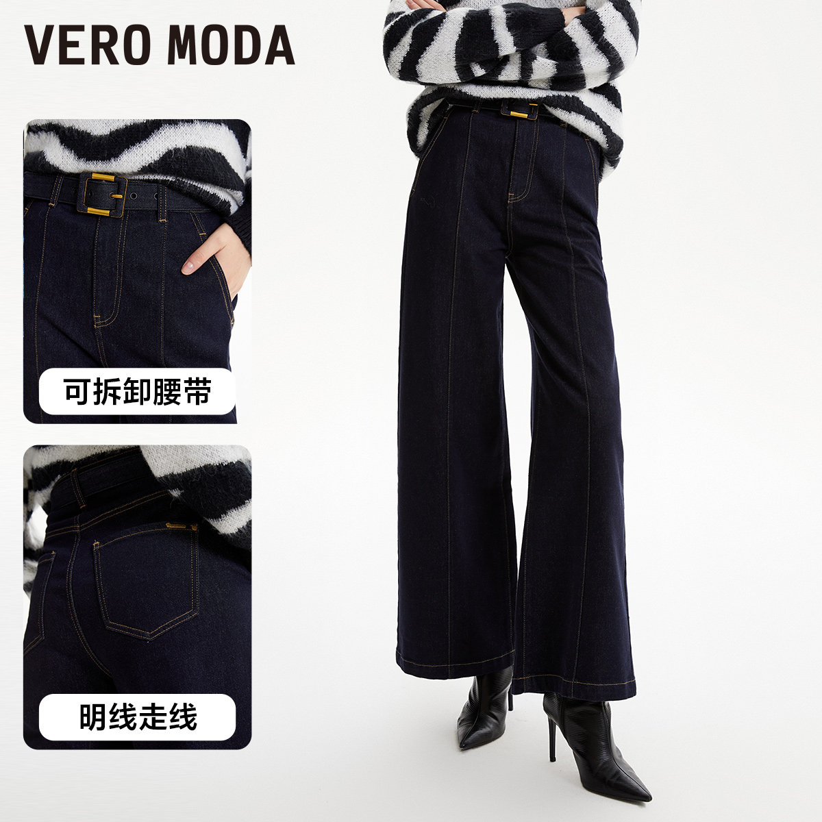 Vero Moda奥莱牛仔裤女2025秋冬新款含棉高街腰带显瘦长裤优雅