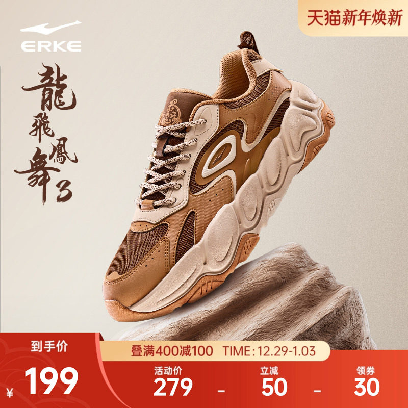 鸿星尔克龙飞凤舞3运动鞋男鞋秋冬季新款老爹鞋增高鞋男士休闲鞋