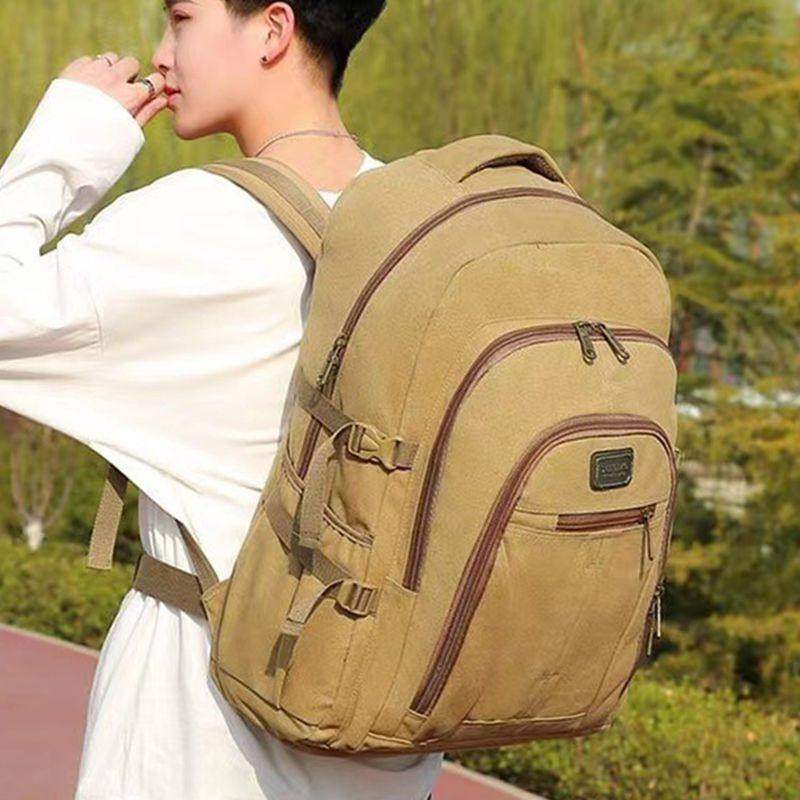 超大容量帆布双肩包男士短途旅行休闲户外背包出差旅游工地专用包