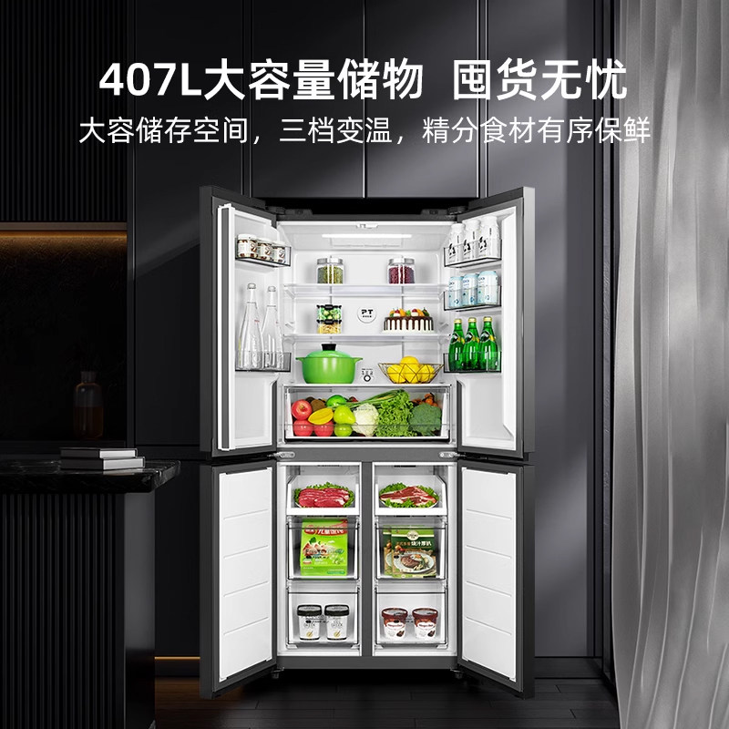 【全国补贴】美的407冰箱以旧换新十字四门家用风冷无霜一级能效