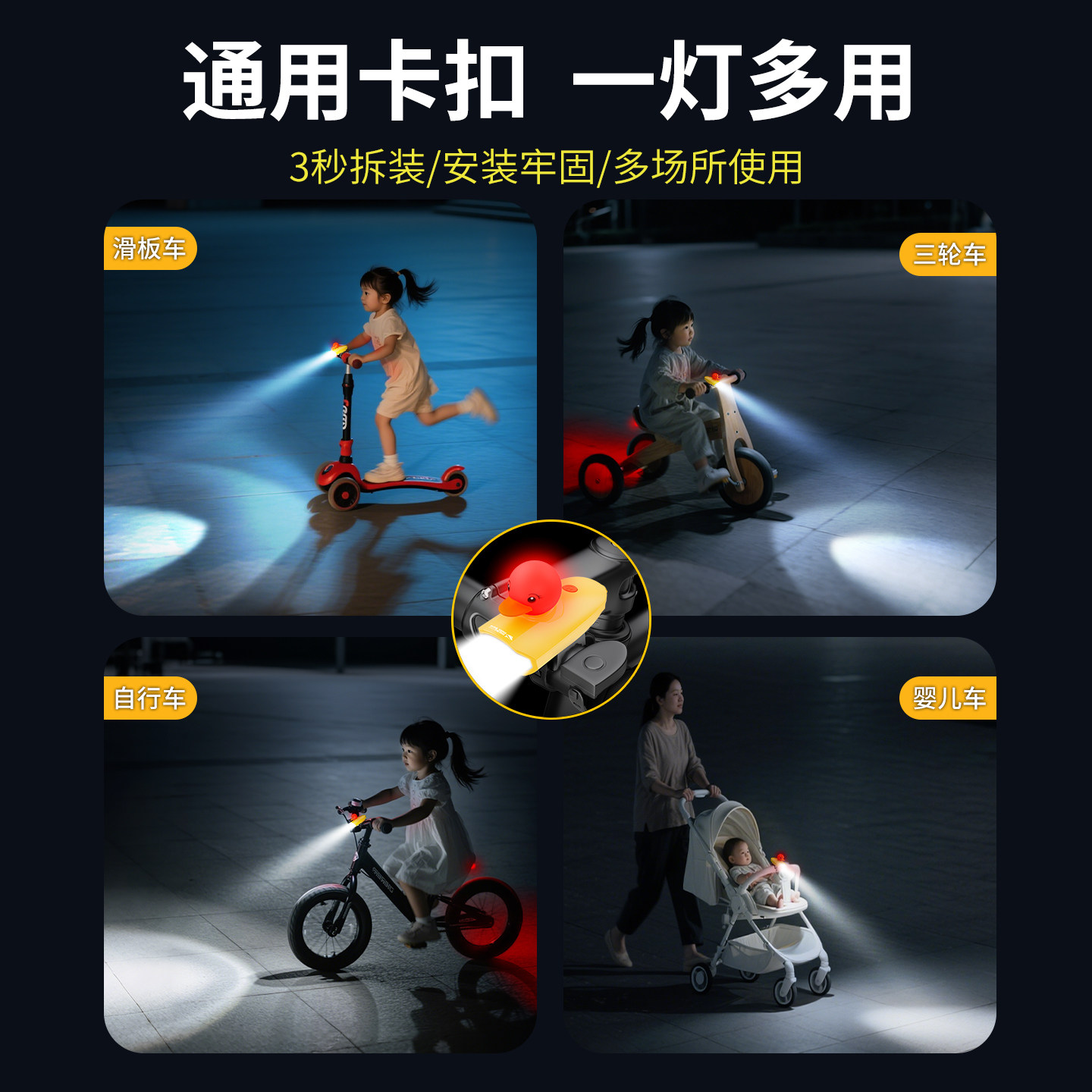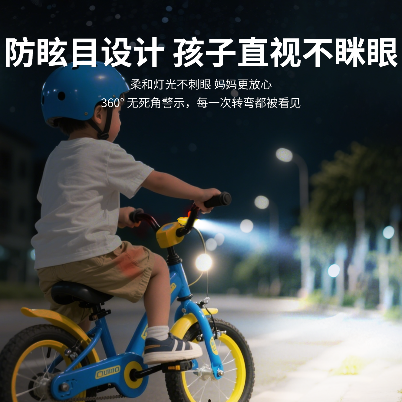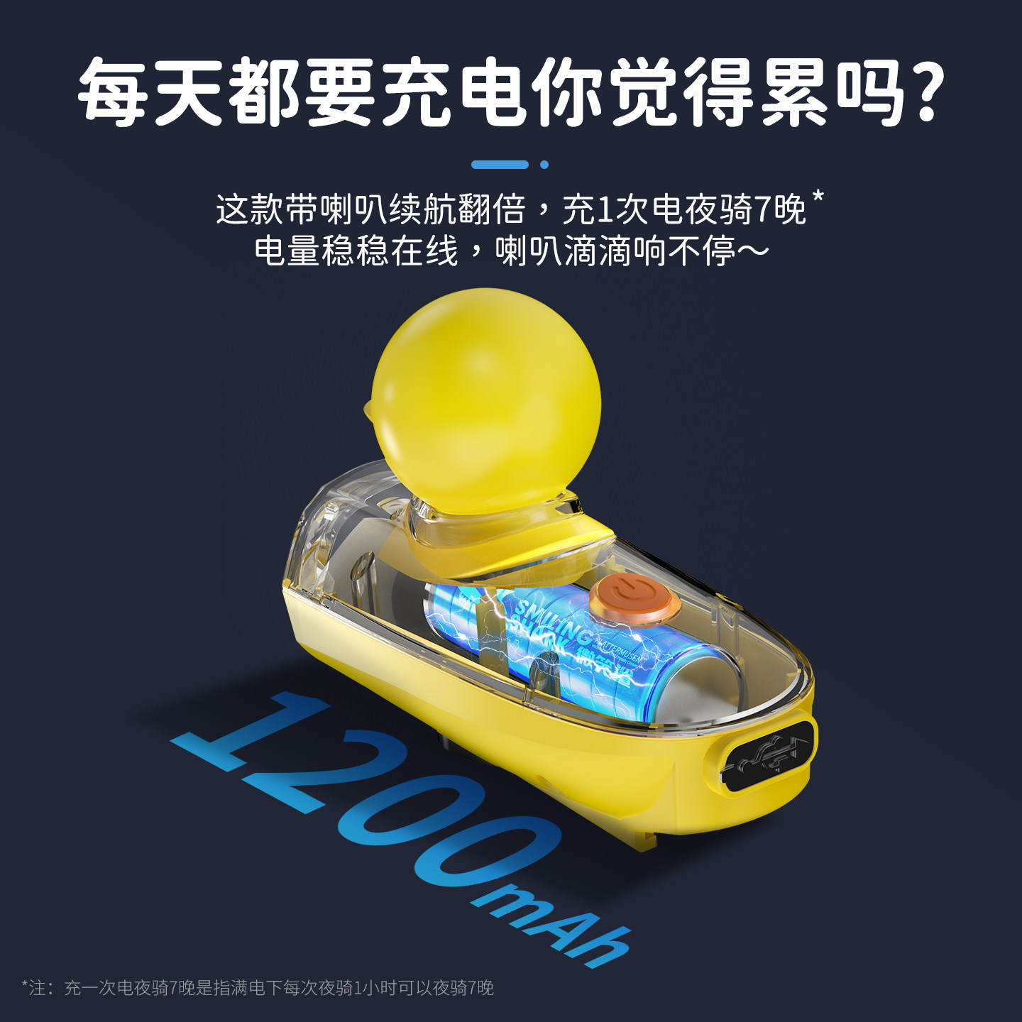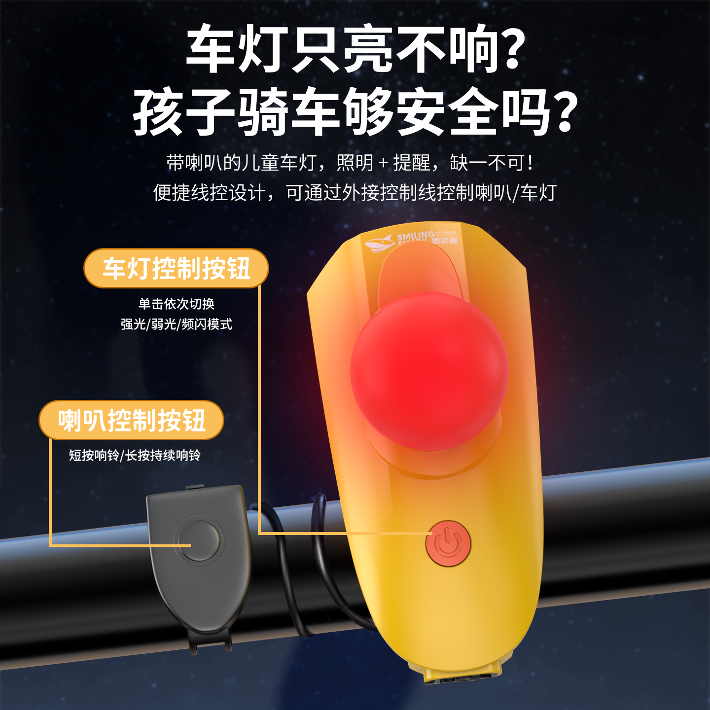 微笑鲨儿童自行车夜骑灯充电前灯喇叭灯车灯带喇叭夜间骑行滑板车