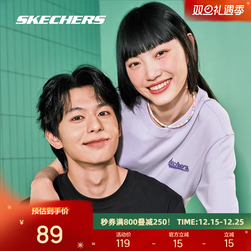 斯凯奇短袖男女款情侣宽松体恤圆领运动T恤凉感上衣时尚百搭