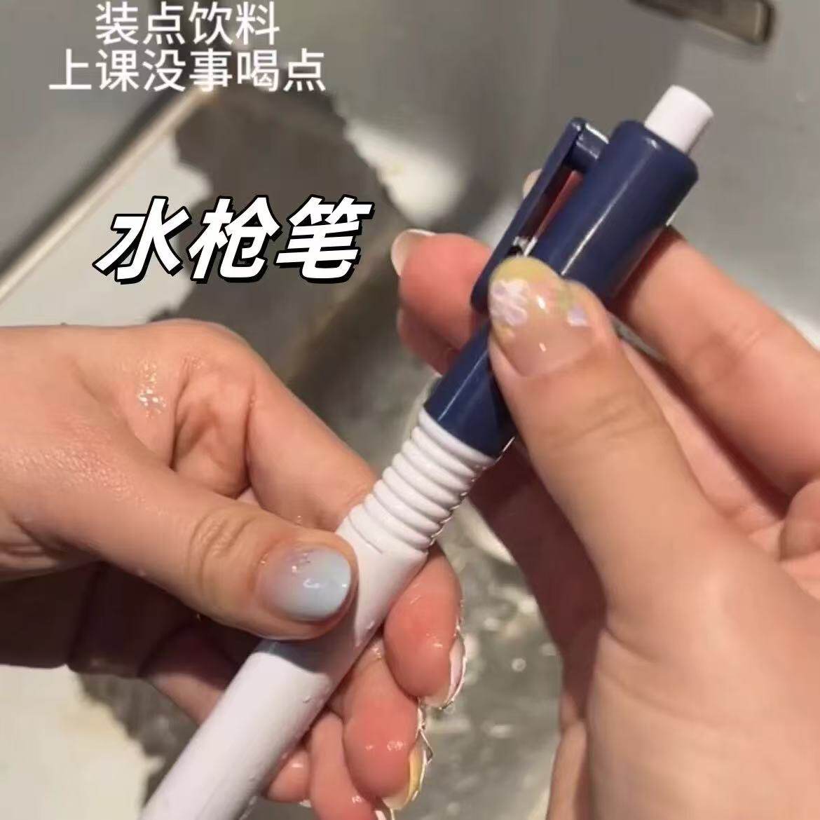 水枪笔创意整蛊按压会呲水的喷水笔恶搞玩具中性笔两用搞怪圆珠笔